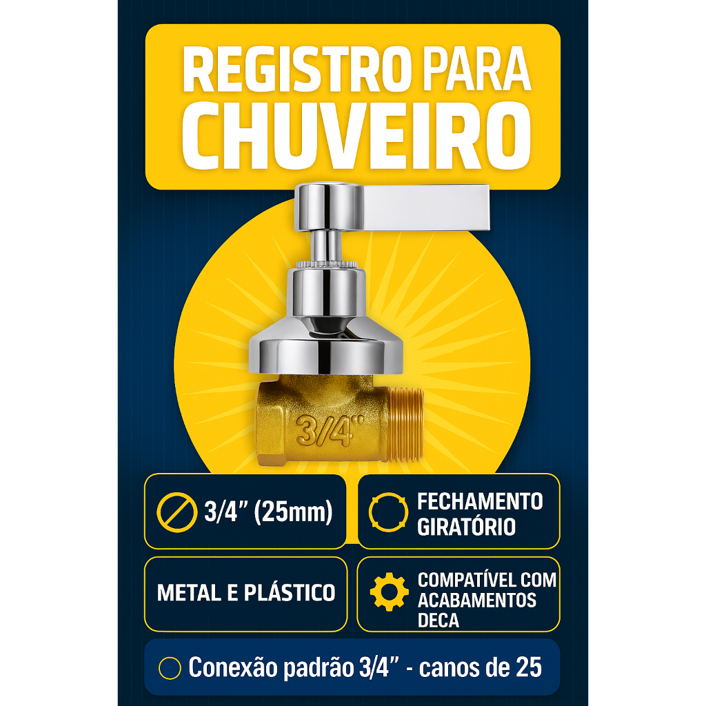 Registro Pressão Chuveiro 1416 - 3/4" Serve Em Cano 25mm Acabamento Cromado