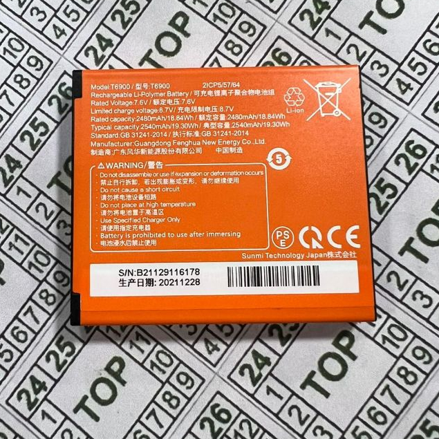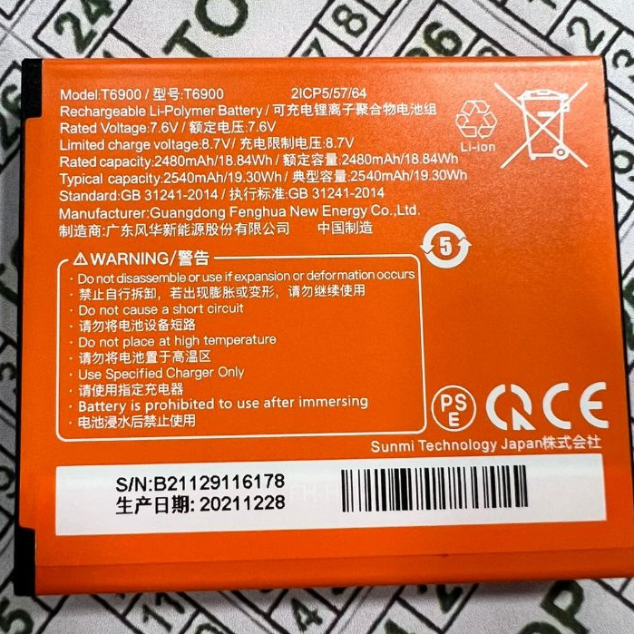 Bateria da posição do oem t6900 para sunmi p2 handheld pos 2480mah 7.6v