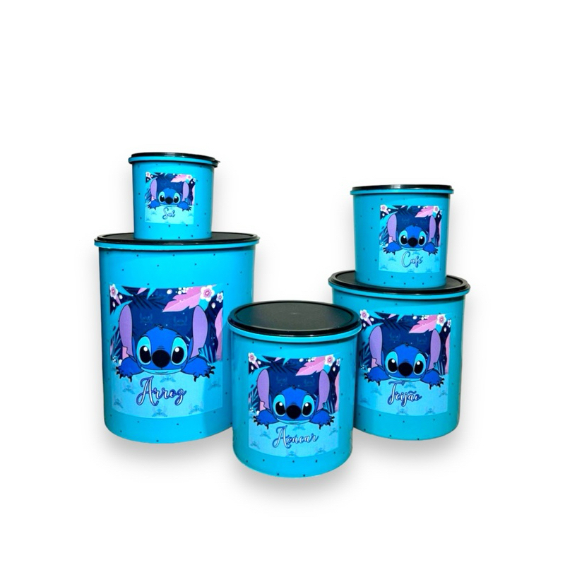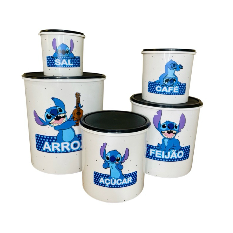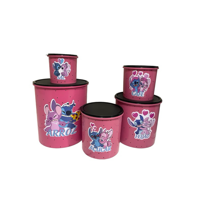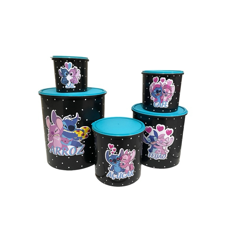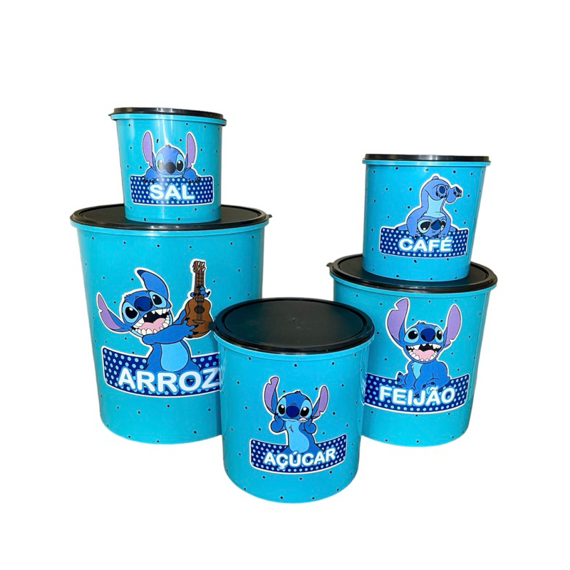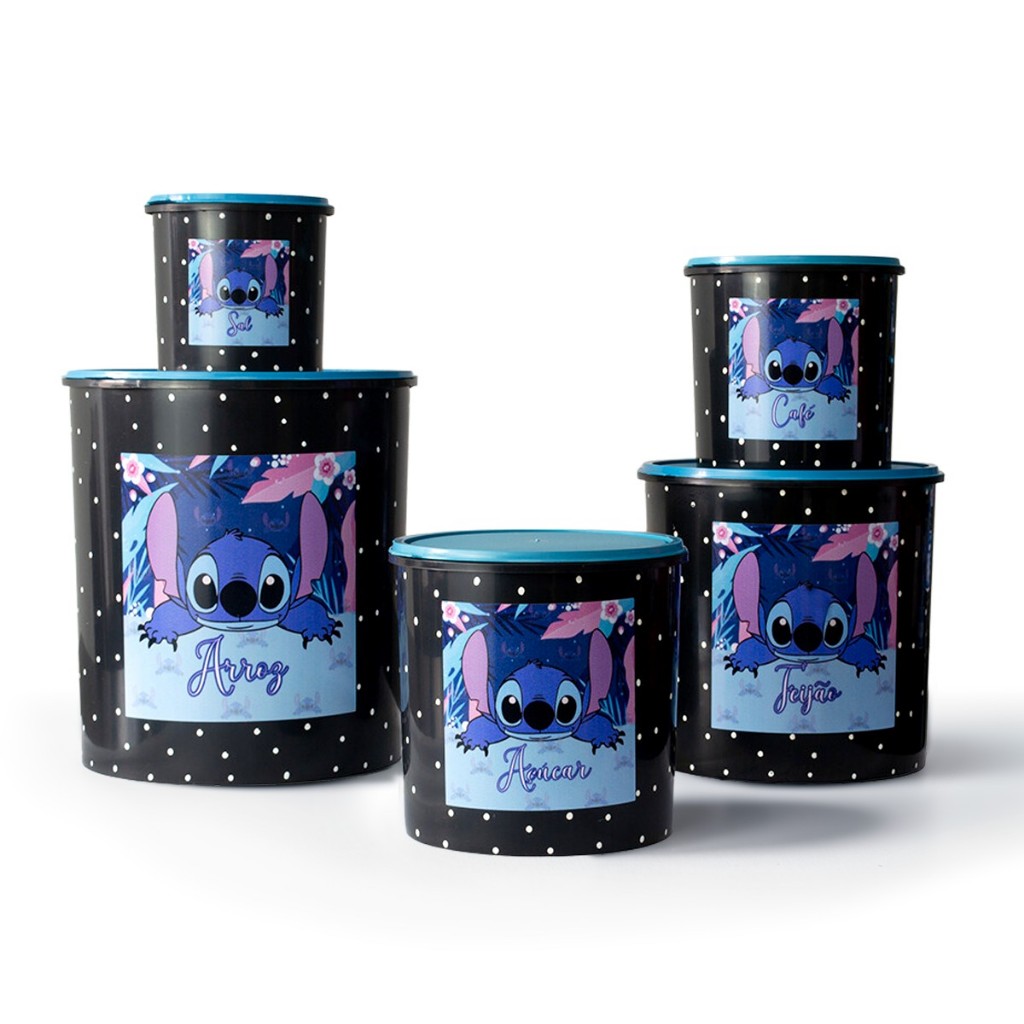 Kit Mantimentos 5 Peças Plástico Adesivado Stich Decoração Cozinha Lar