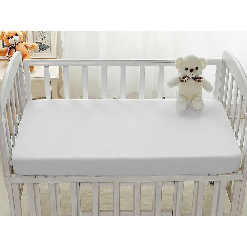Protetor de Colchão Impermeável Com Elástico Branco Para Berço Infantil - 1,30m x 70cm