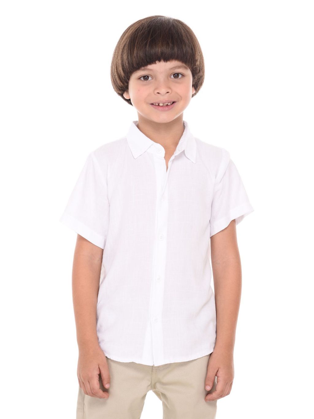 Camisa Social Infantil Branca Manga Curta Botões Festa