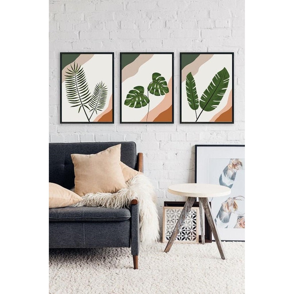 Quadro Decorativo Kit 03 Peças 40x60 Folhagem Verde Estilo Boho Para Sala Quarto Escritório Sem Moldura