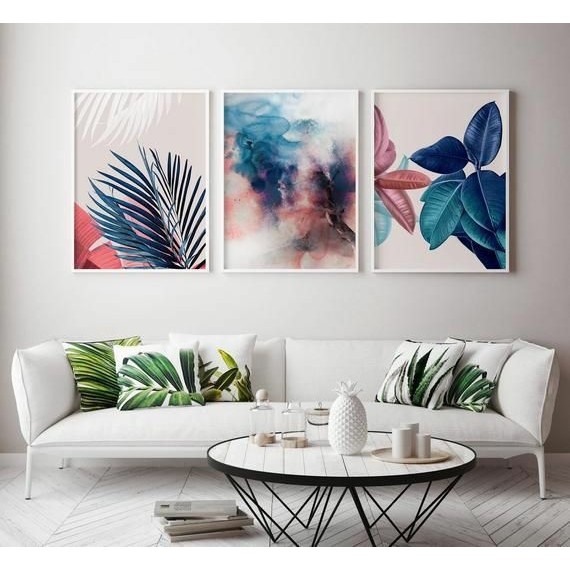 Quadro Decorativo Kit 03 Peças Tamanhos: 40x60 - 50x70 Folhagem Arte Abstrata Colorido Para Sala Quarto Escritório - Placas Sem Moldura