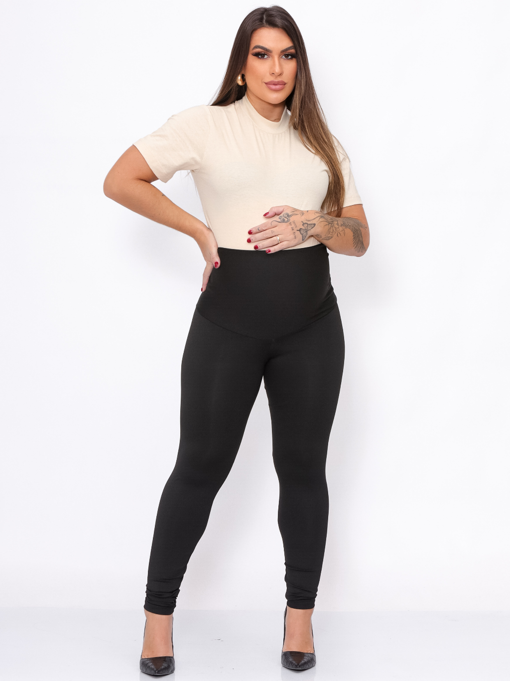 Kit 2 Leggings Gestante Flare + Básica Maternidade Preto Suplex Zero Transparência PP ao Plus Size