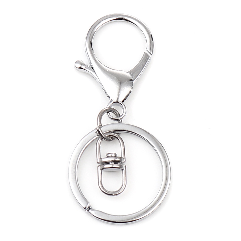 Argola para chaveiro com corrente - prata - 30mm + Fecho Lagosta 35mm 10 peças