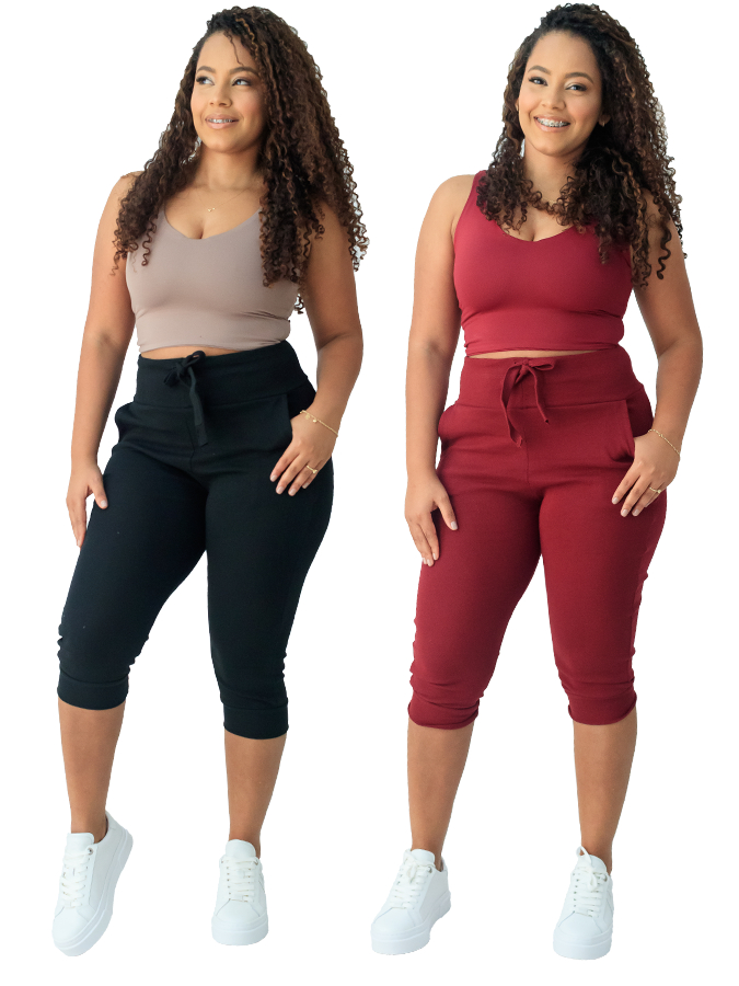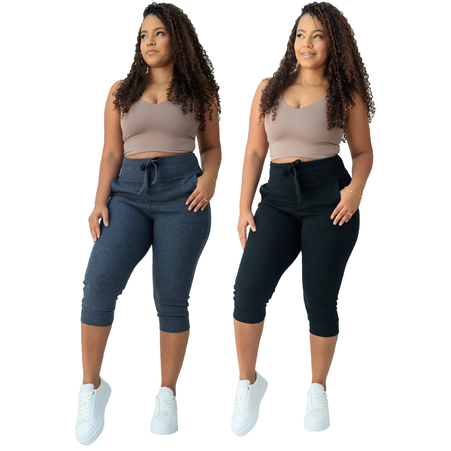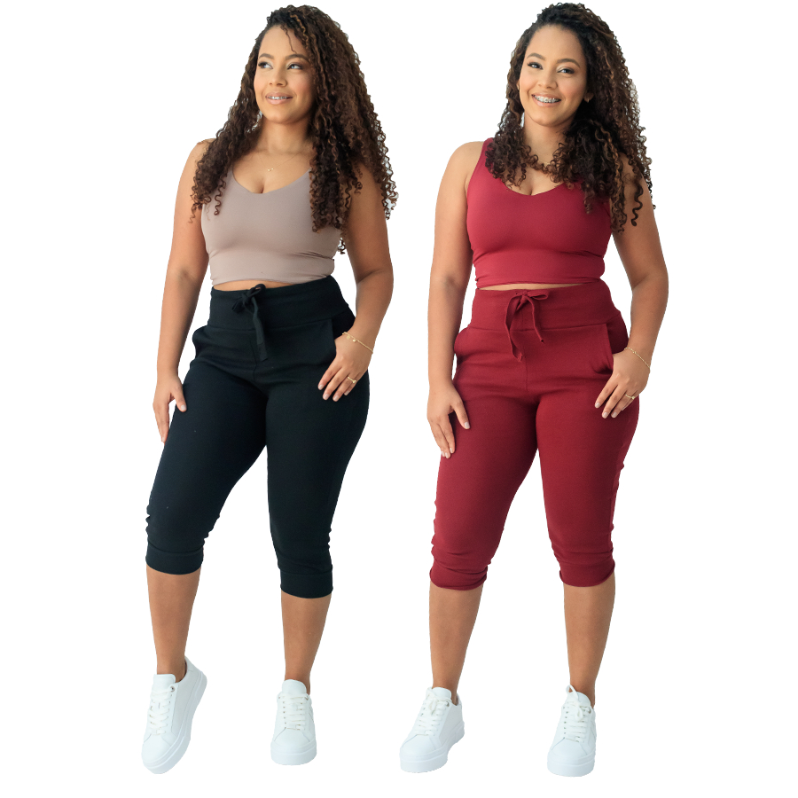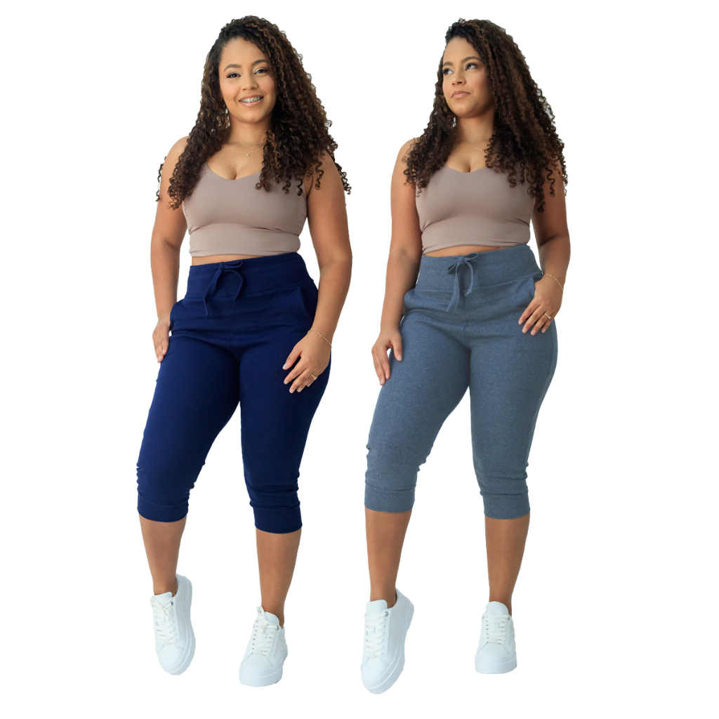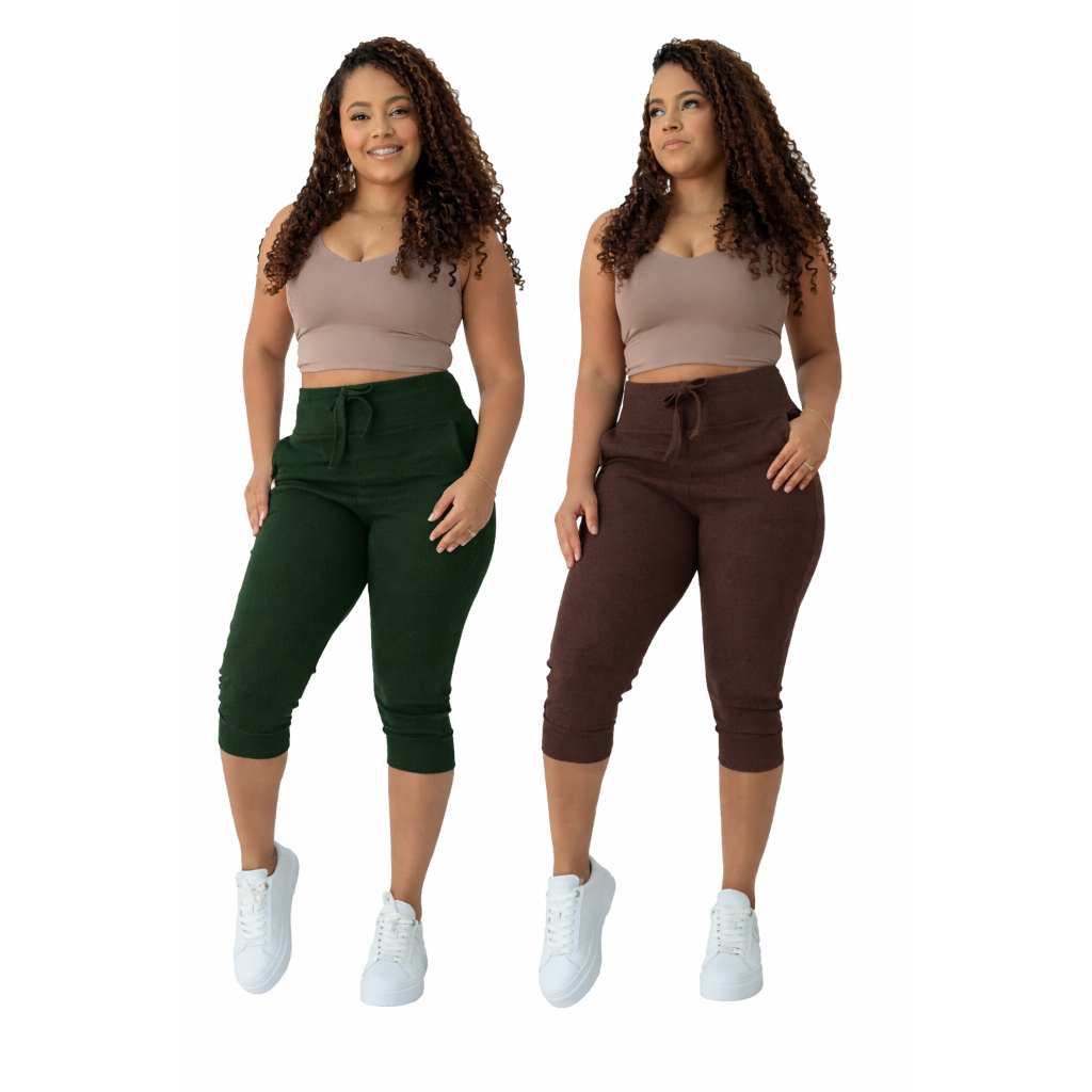 kit 2 calça capri corsario feminina com elastano cintura alta confortavel