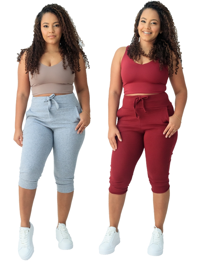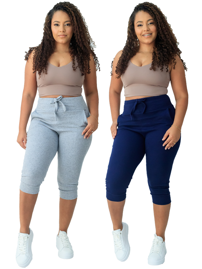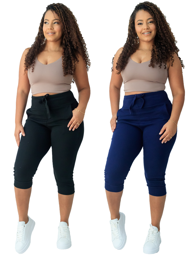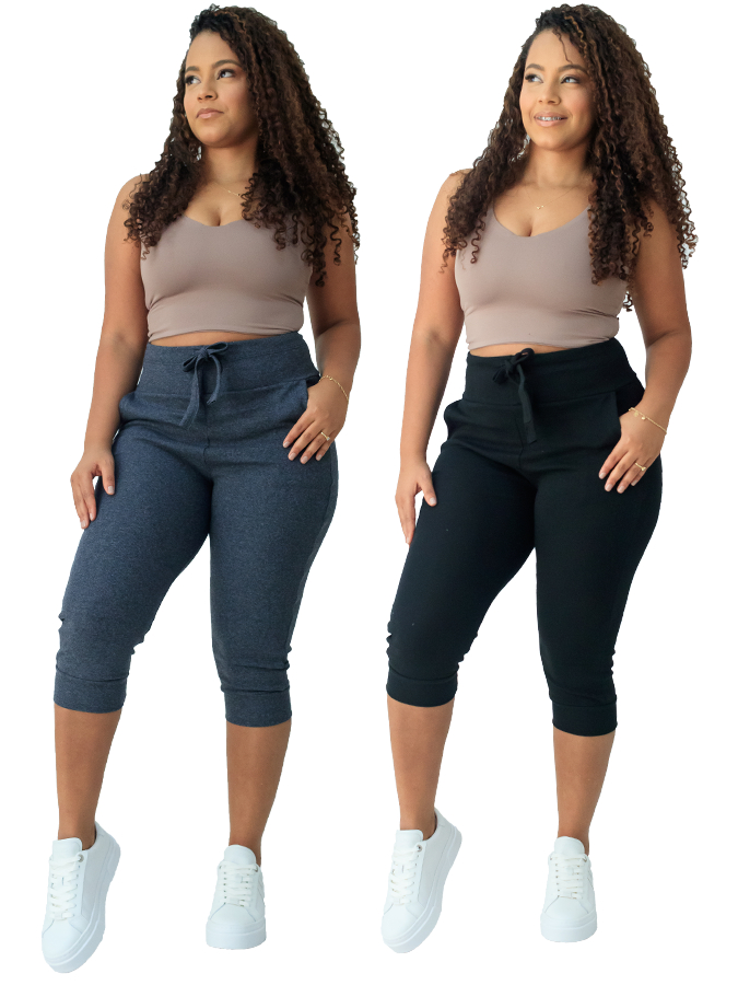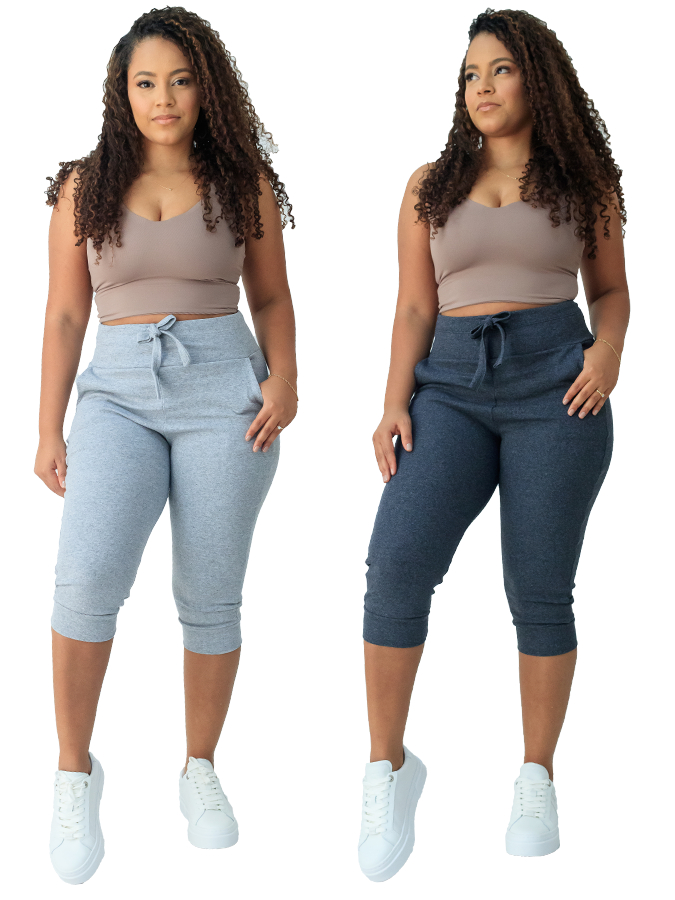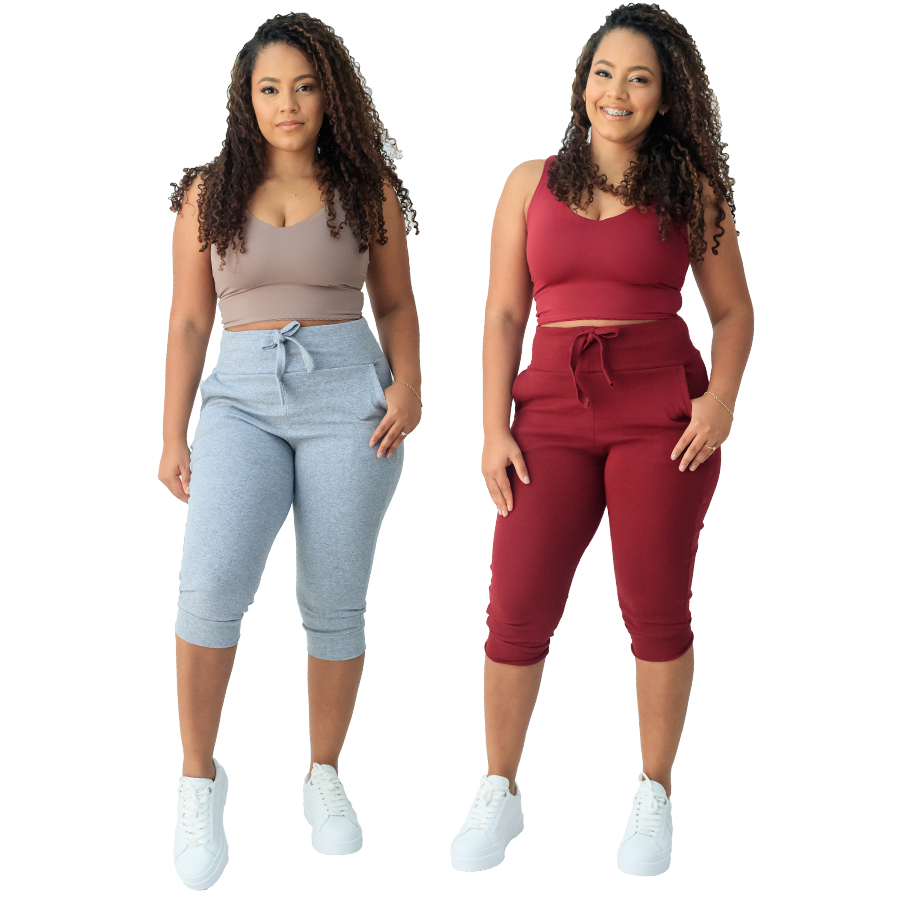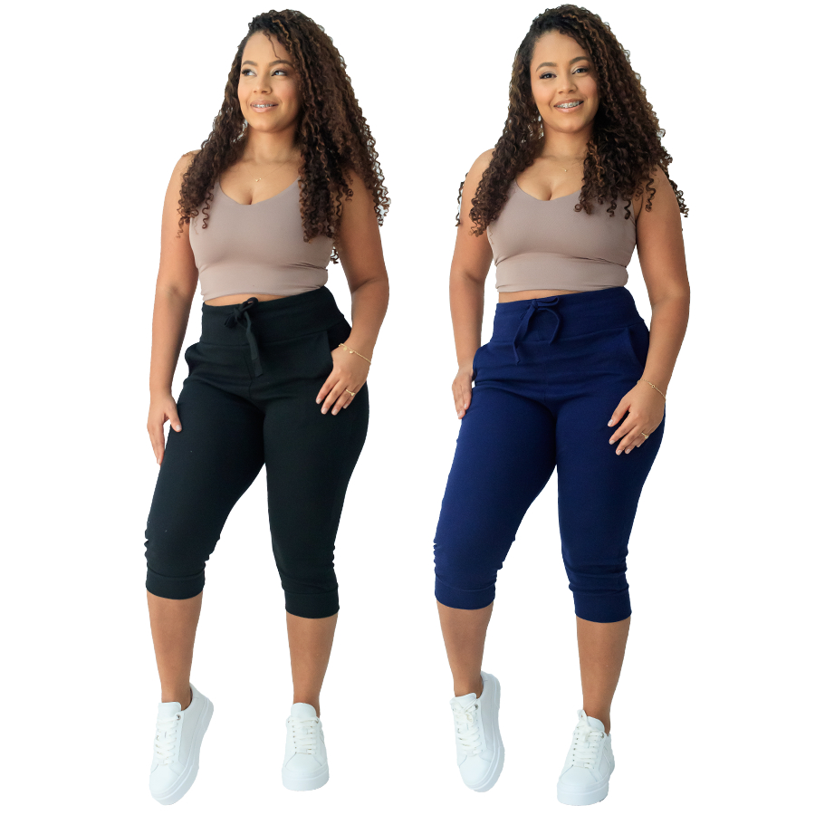 kit 2 calça capri corsario feminina com elastano cintura alta confortavel