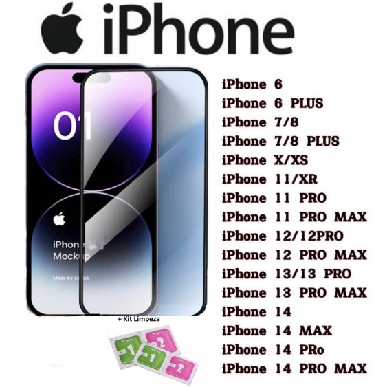 iPhone Película 3D/9D Vidro cobre toda a tela 100% Todos Modelos