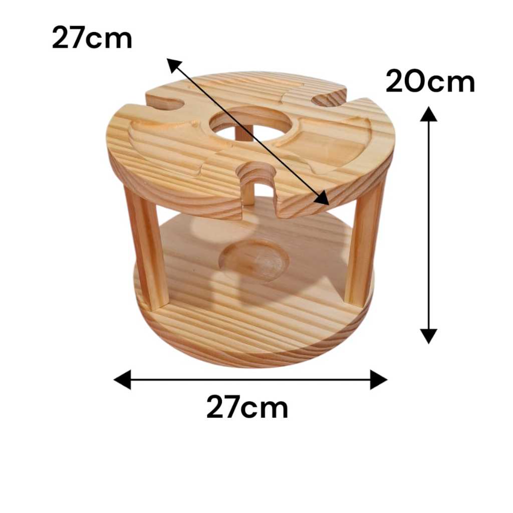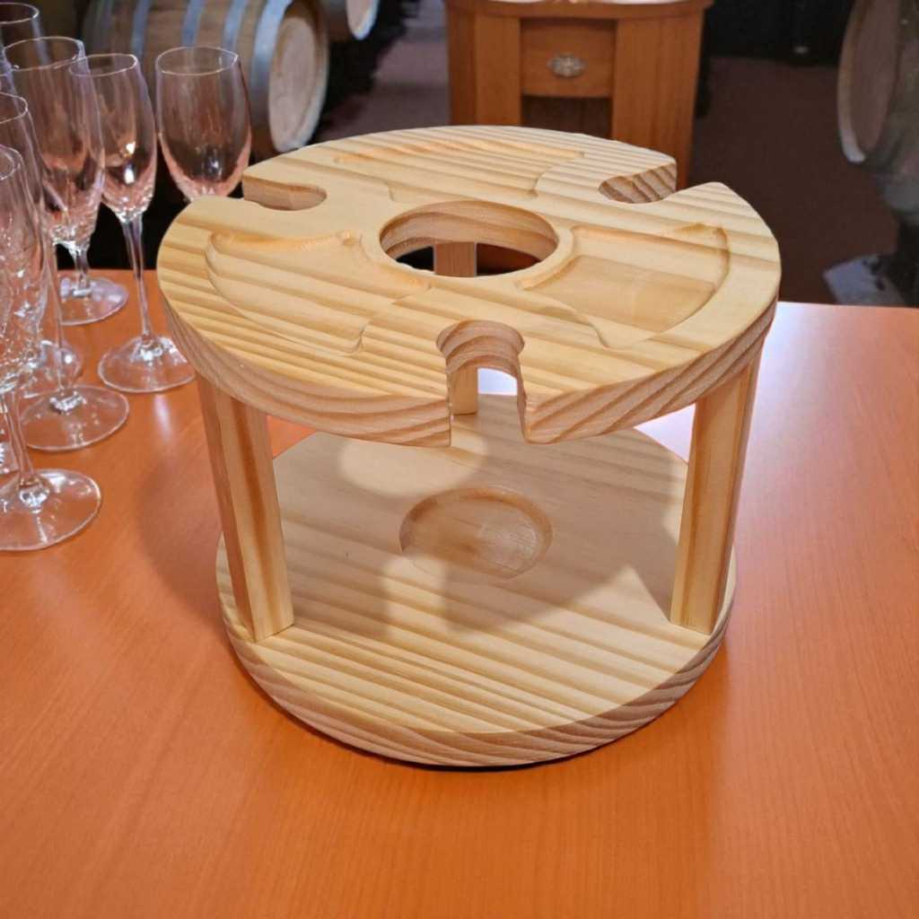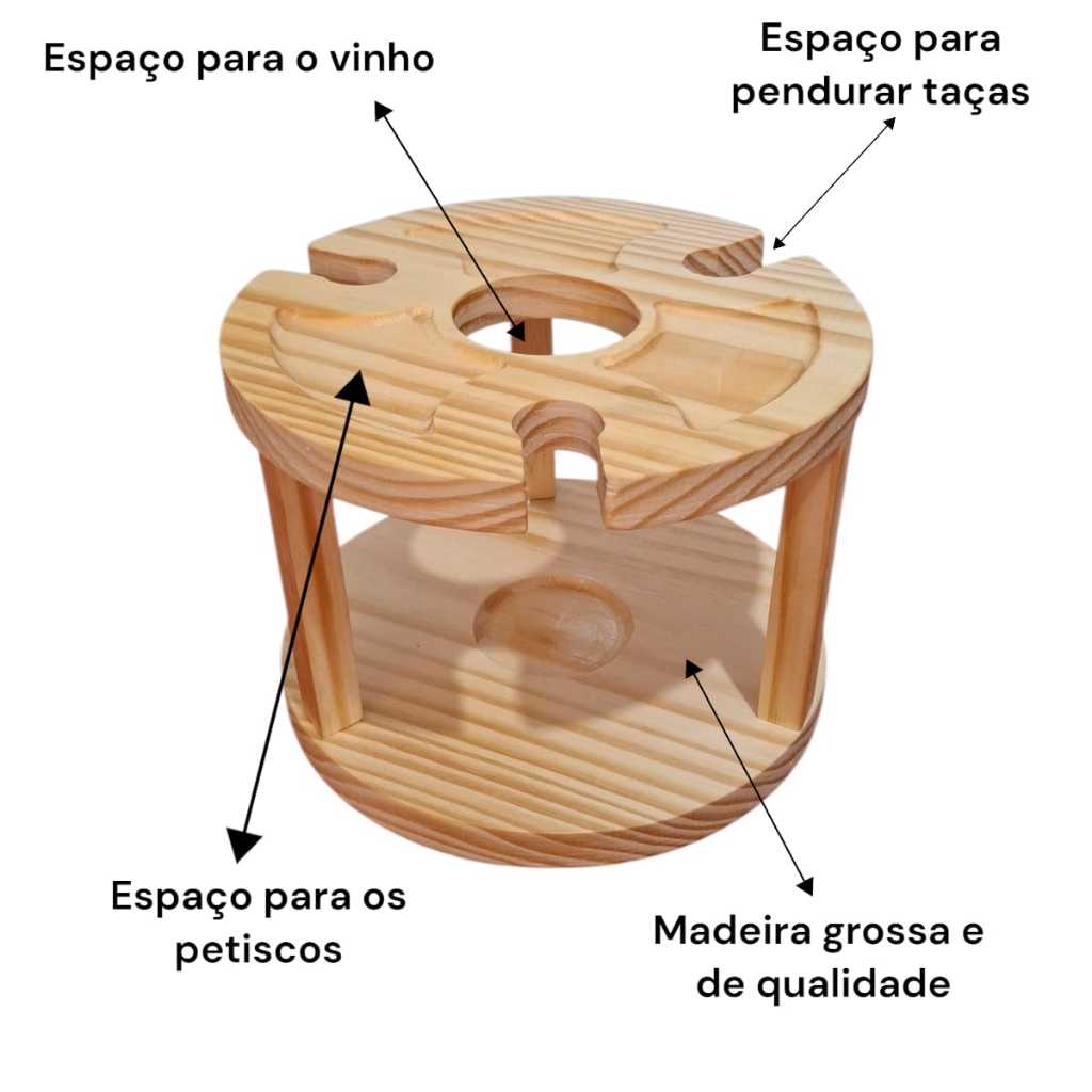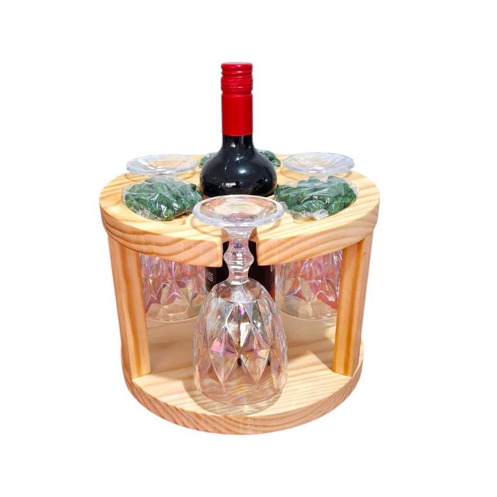 Petisqueira Porta Taças e Vinho em Madeira Pinus Porta Frios Decoração Mesa Posta Ceia Natal Luxo