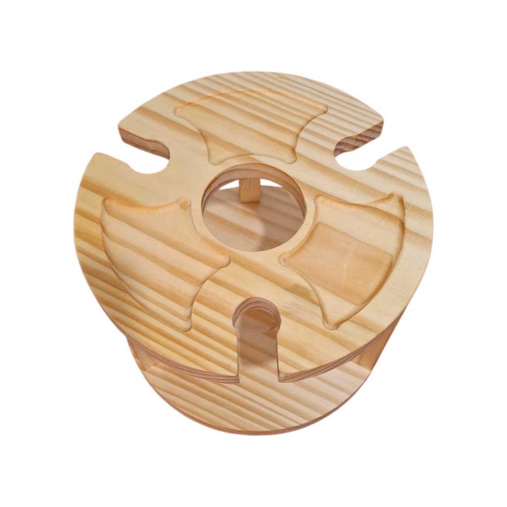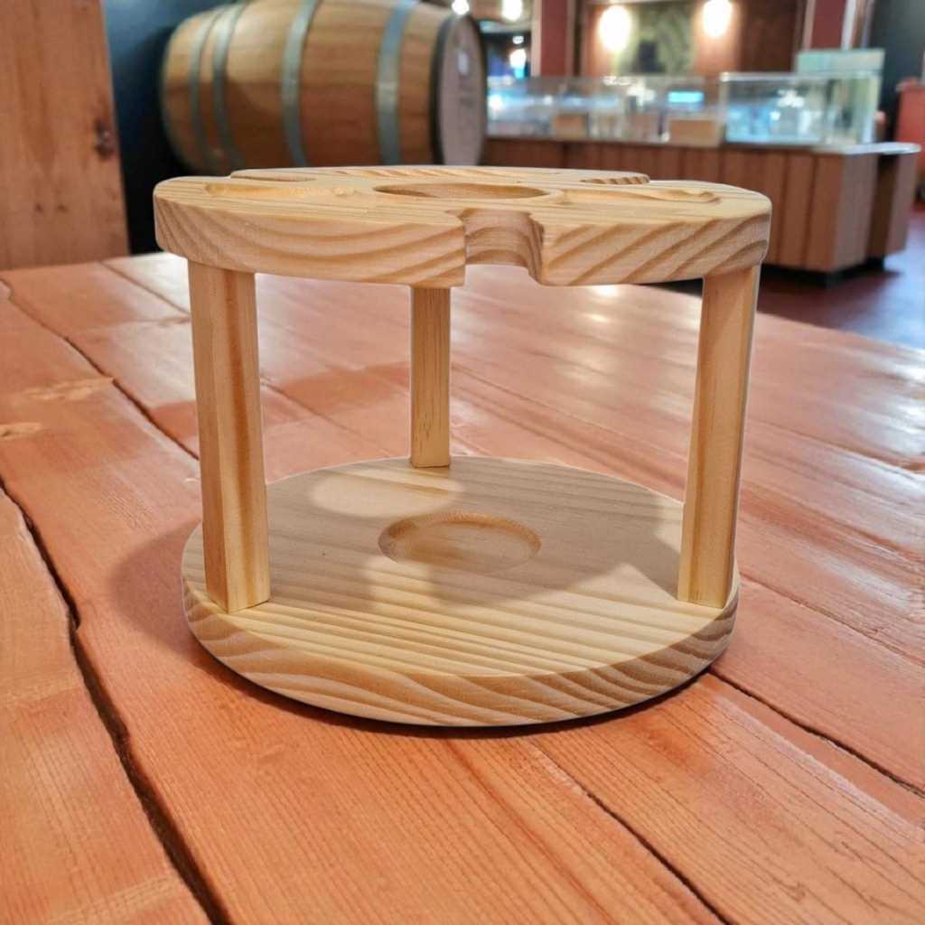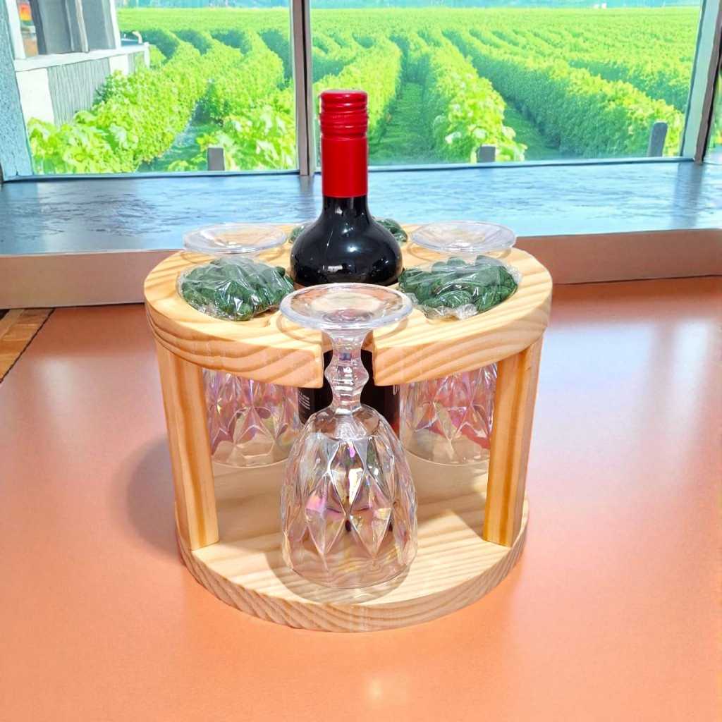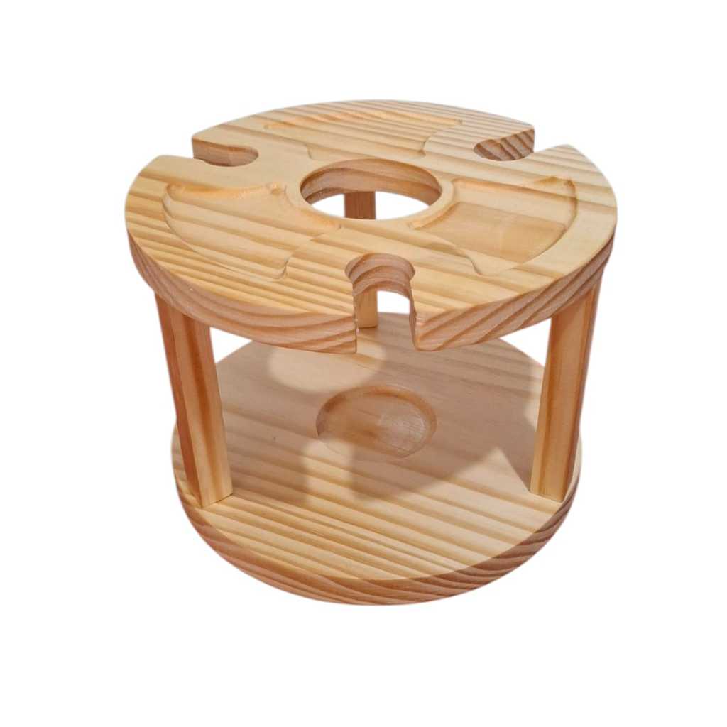 Petisqueira Porta Taças e Vinho em Madeira Pinus Porta Frios Decoração Mesa Posta Ceia Natal Luxo