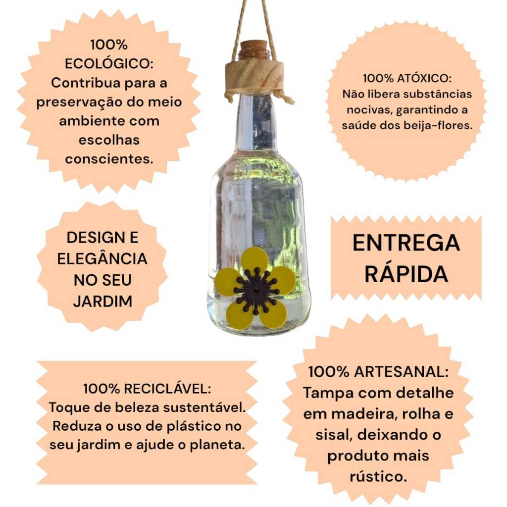 Bebedouro Para Beija Flor Passaros Livres Vidro Alimentador Aves Jardim Decorativo Artesanal Garrafa