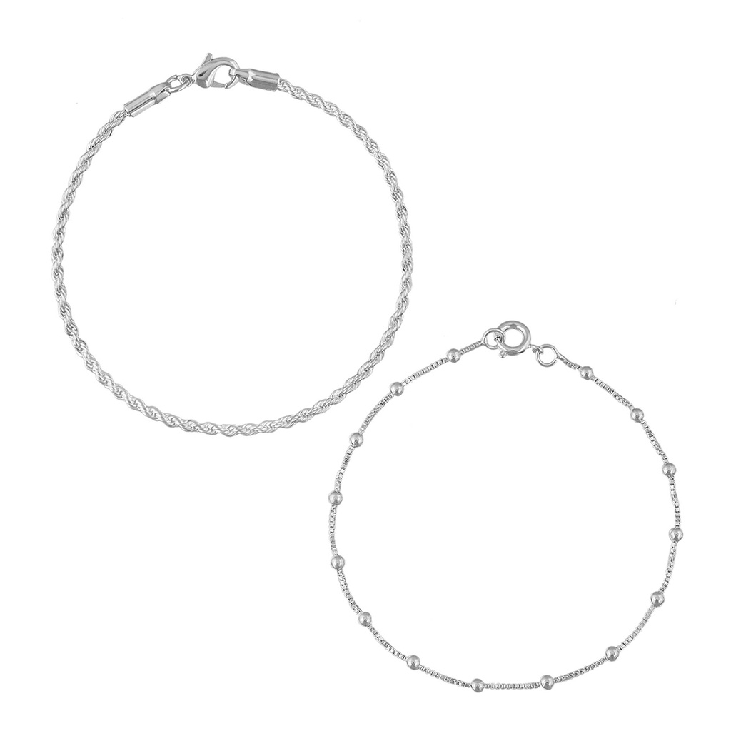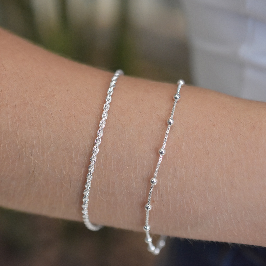 Kit Pulseira Feminina Cordão Baiano + Bolinha Veneziana Banhada A Prata 925