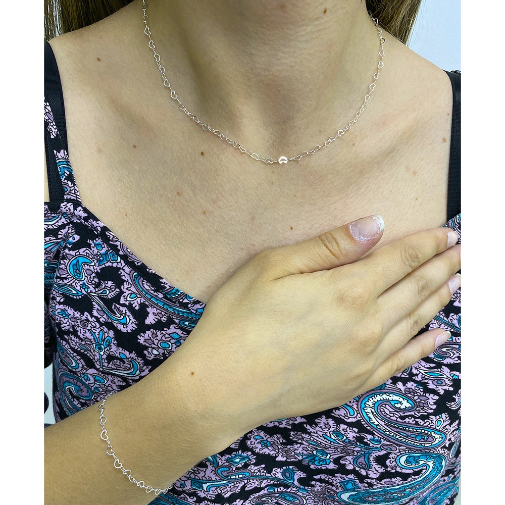 Kit Conjunto Colar Gargantilha Choker Banhada Prata 925 Legítima + Pulseira Elo Coração