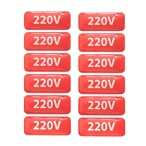 Etiquetas De Voltagem Tomada 220v Vermelho Resinado 12pcs