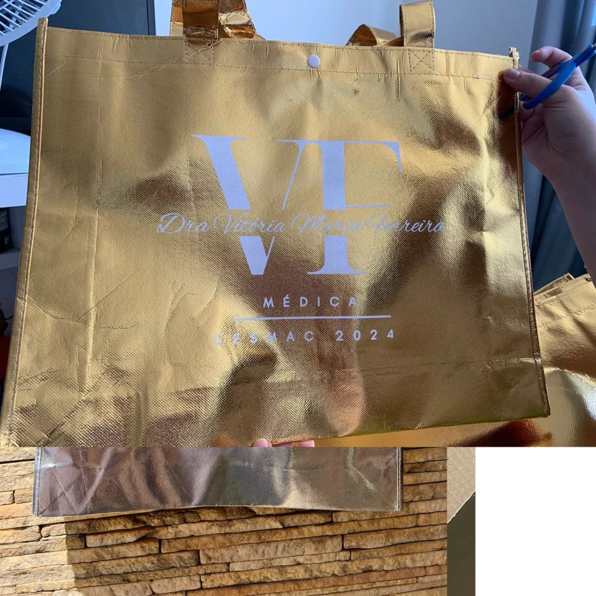 Sacola Tnt Metalizado 45x35x11 Personalizada C/ Logo Kit Com 30 Unidades