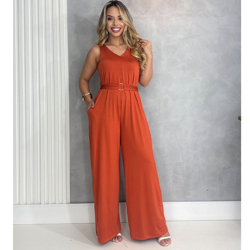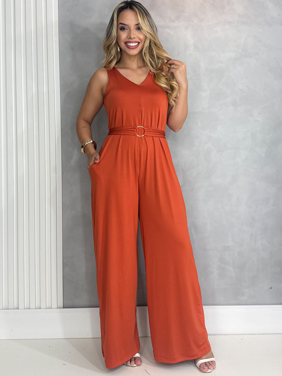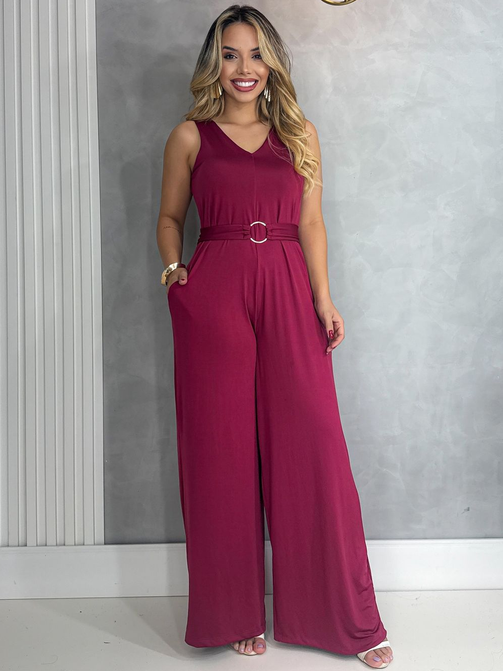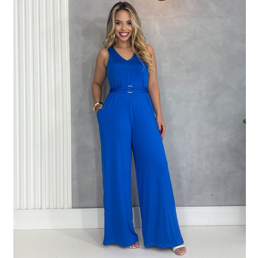 Macacão Laço Pantalona Elegante Com Ziper Nas Costas