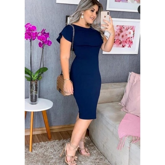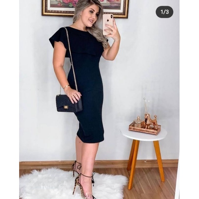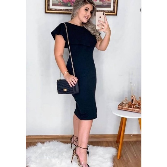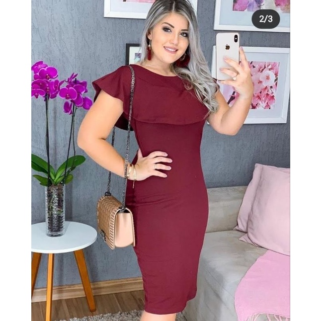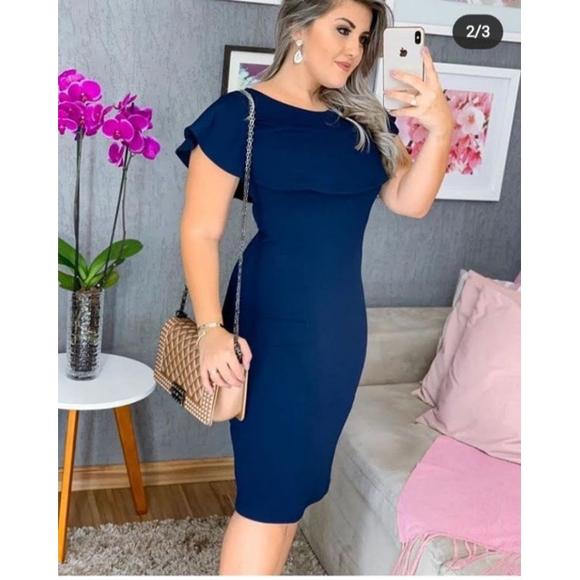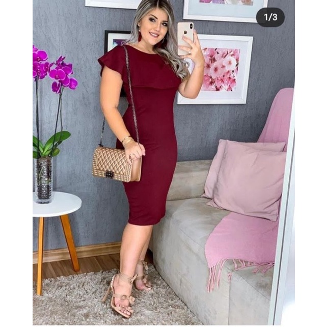 Vestido Midi Plus Size Babado na Gola Moda Evangélica Feminina