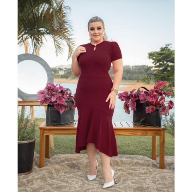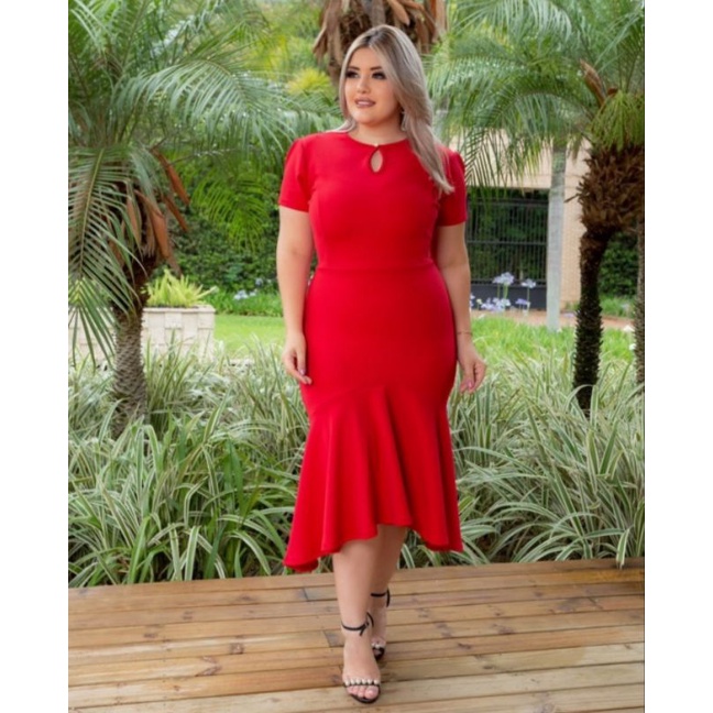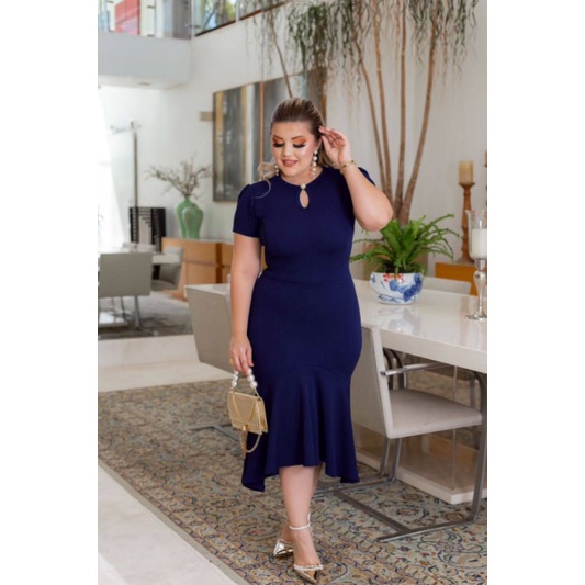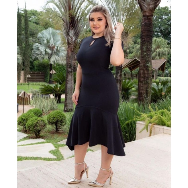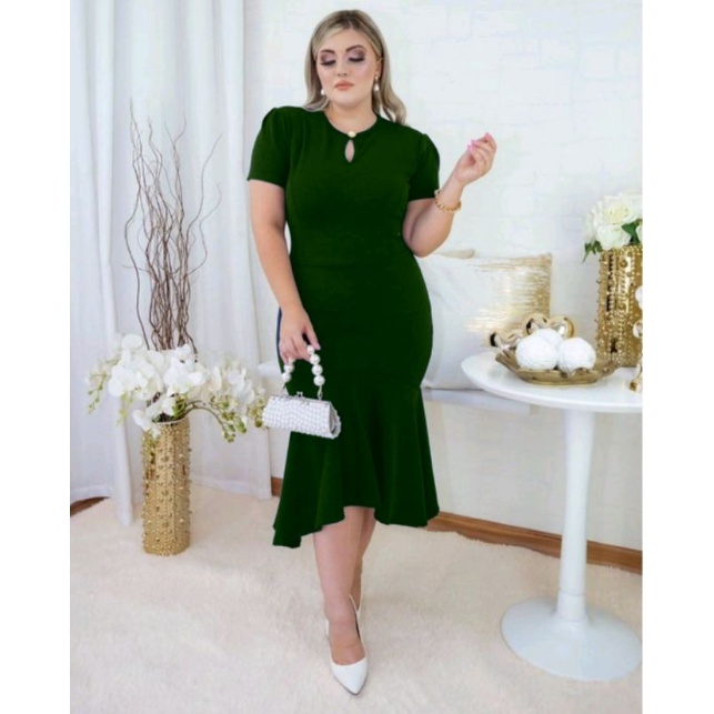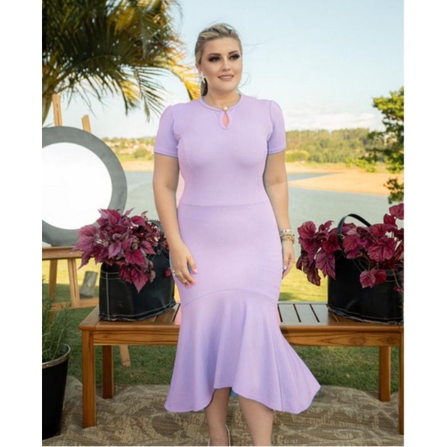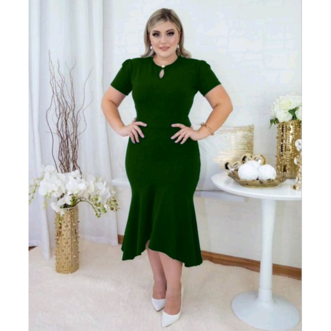 Vestido Babado detalhe botão Moda evangélica feminina