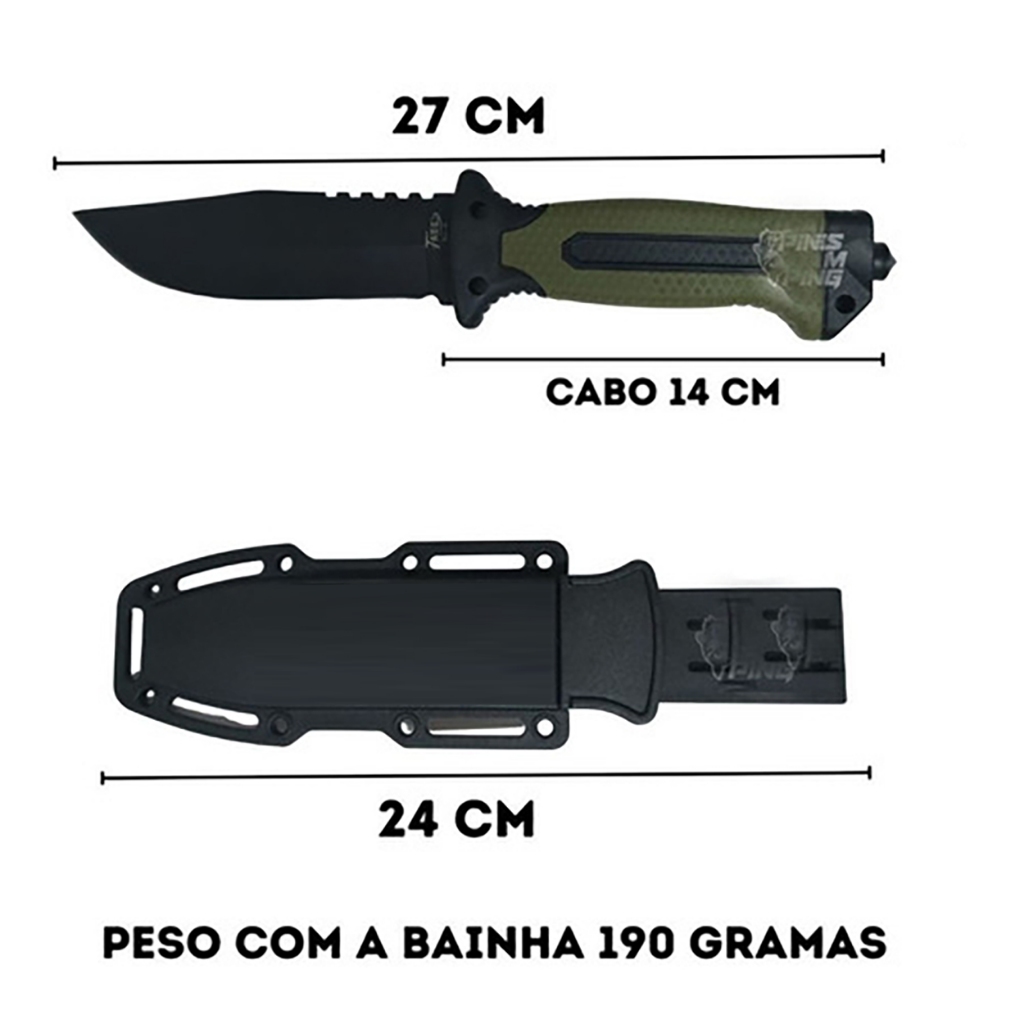 Faca Xingu Tatica Bainha Esportiva Caça Pesca Tatica Média Cabo Emborrachado Quebra Vidro Xv 3440