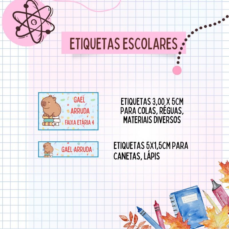 Kit 130 Etiquetas Escolares Personalizadas| Nome e Turma | Volta às Aulas | capivara
