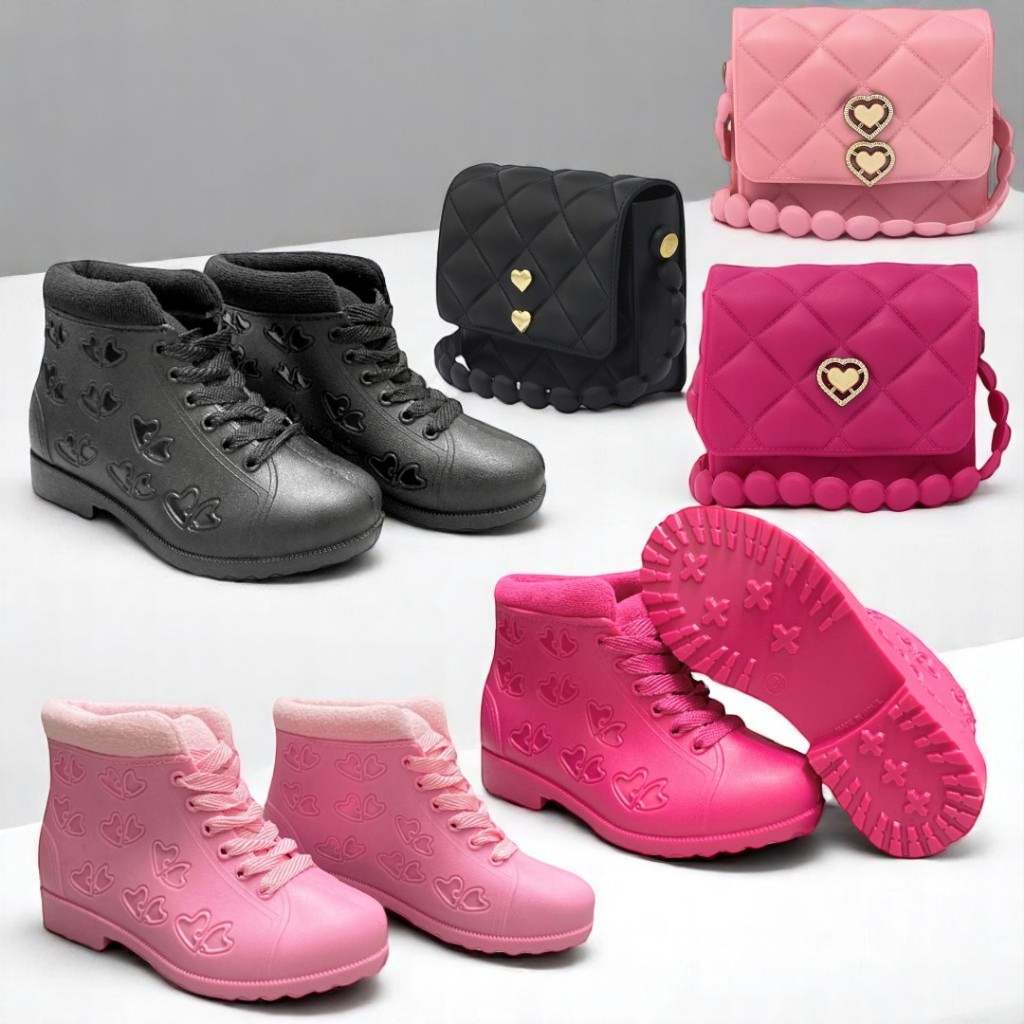 Conjunto Coração Botinha + Bolsinha Com Alça Moda Kids Infantil Macio E Confortável Ohana Brasil