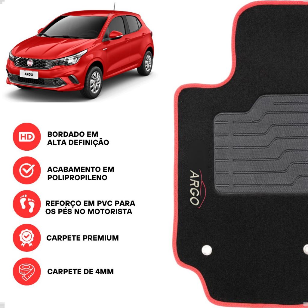 Jogo De Tapete - Carpete -Bordado - Compatível - Fiat Argo ano 2016 - 2025 - Automóvel - Carro