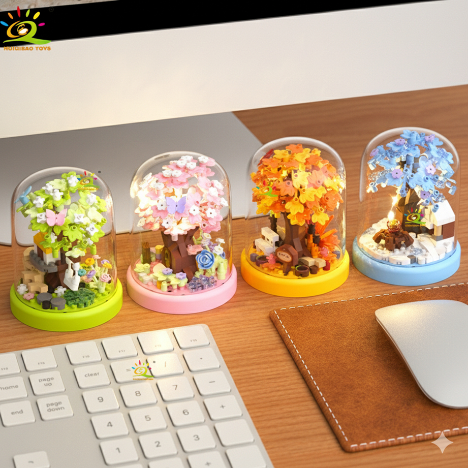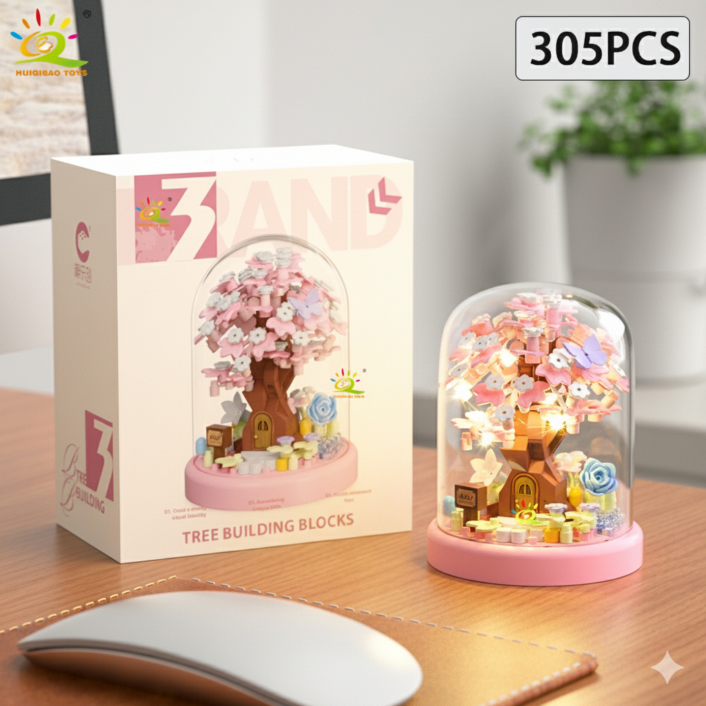 Mini de Árvore Sakura Flor de Cerejeira 4 Estações Quebra-Cabeça 3D - Blocos de Montar Colecionável