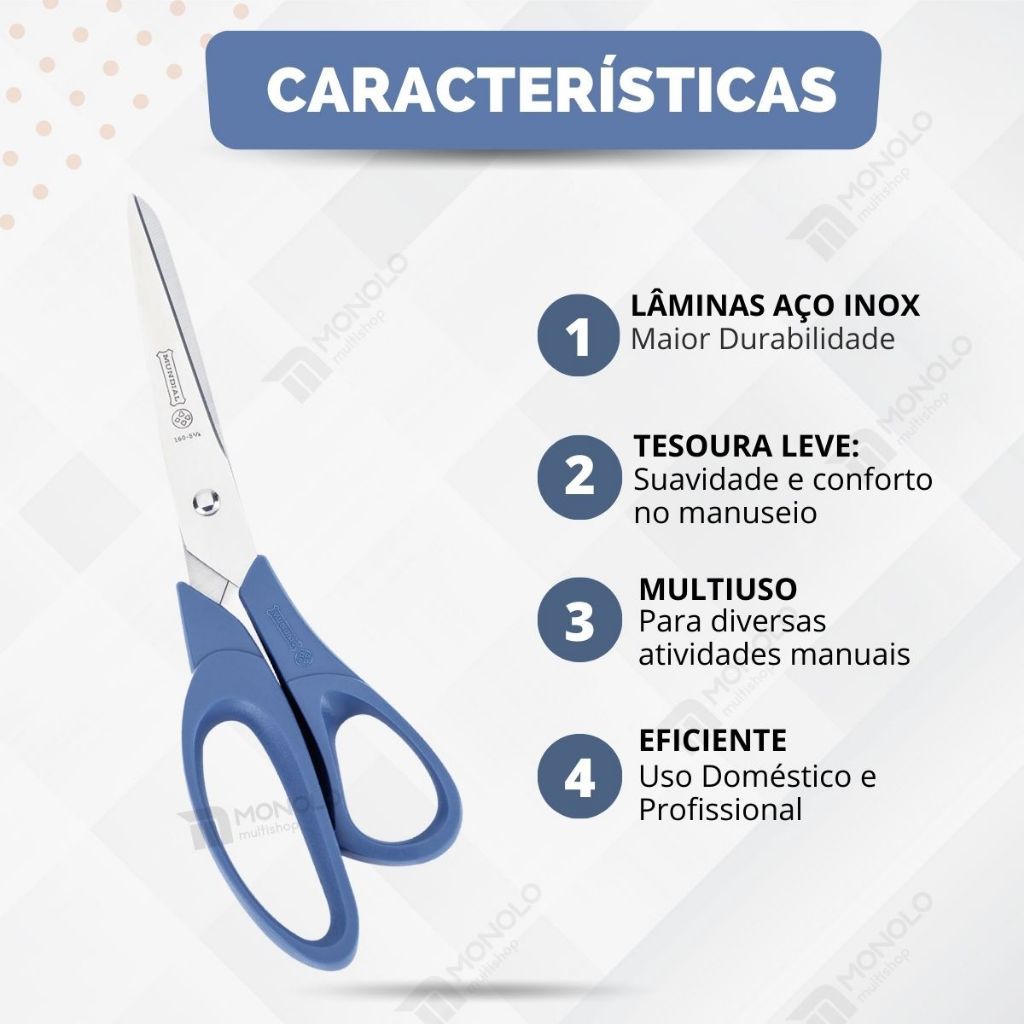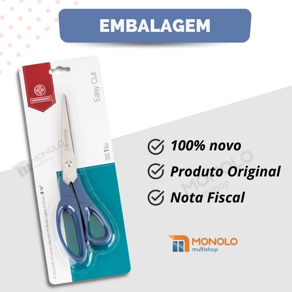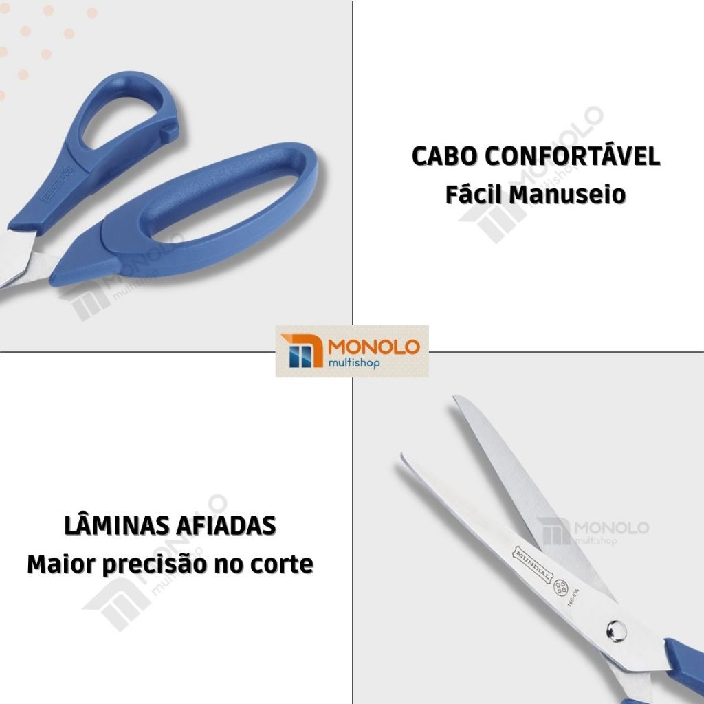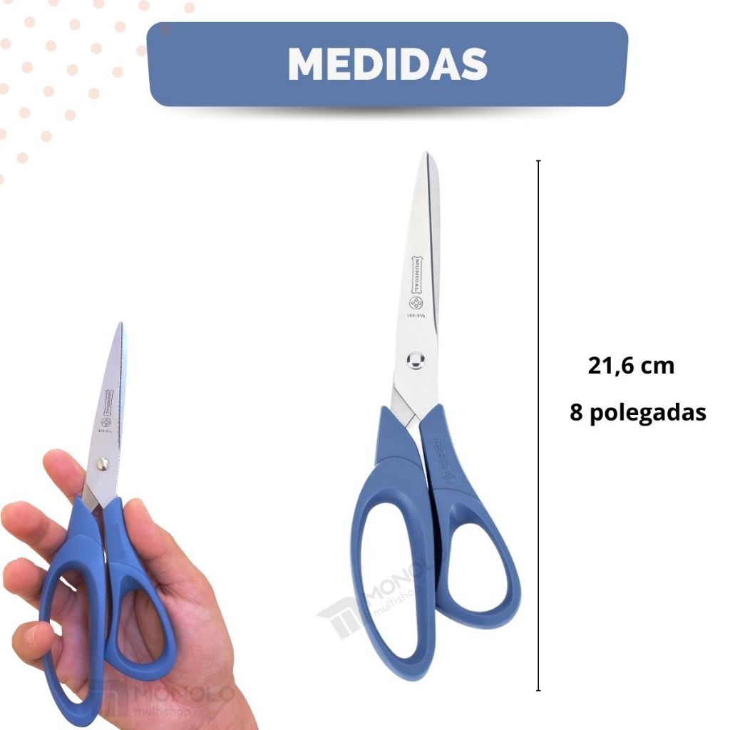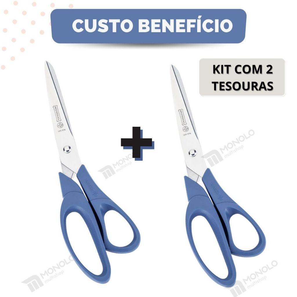 Kit 2 Tesoura Mundial Multiuso Original 160N-8 1/2 Easy Cut Costura Eficiente Afiada Inox 21,6cm