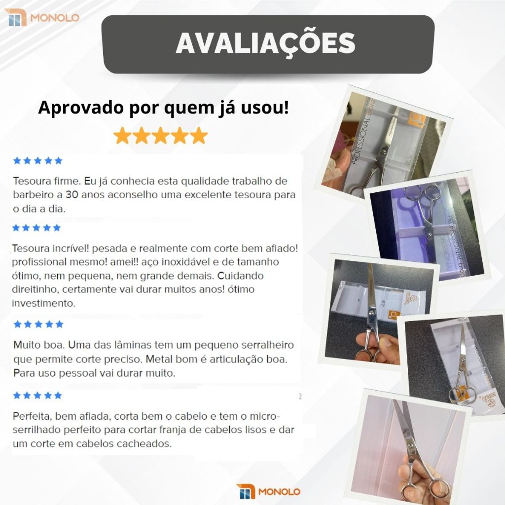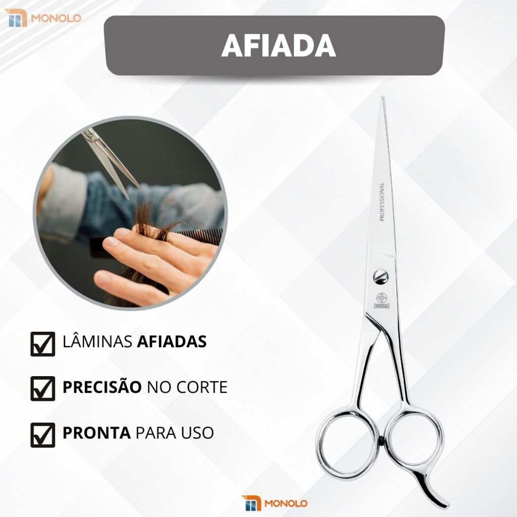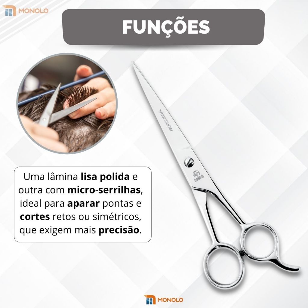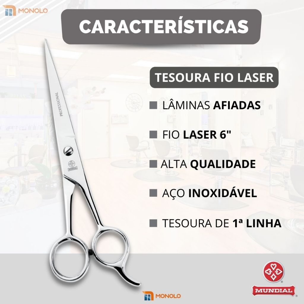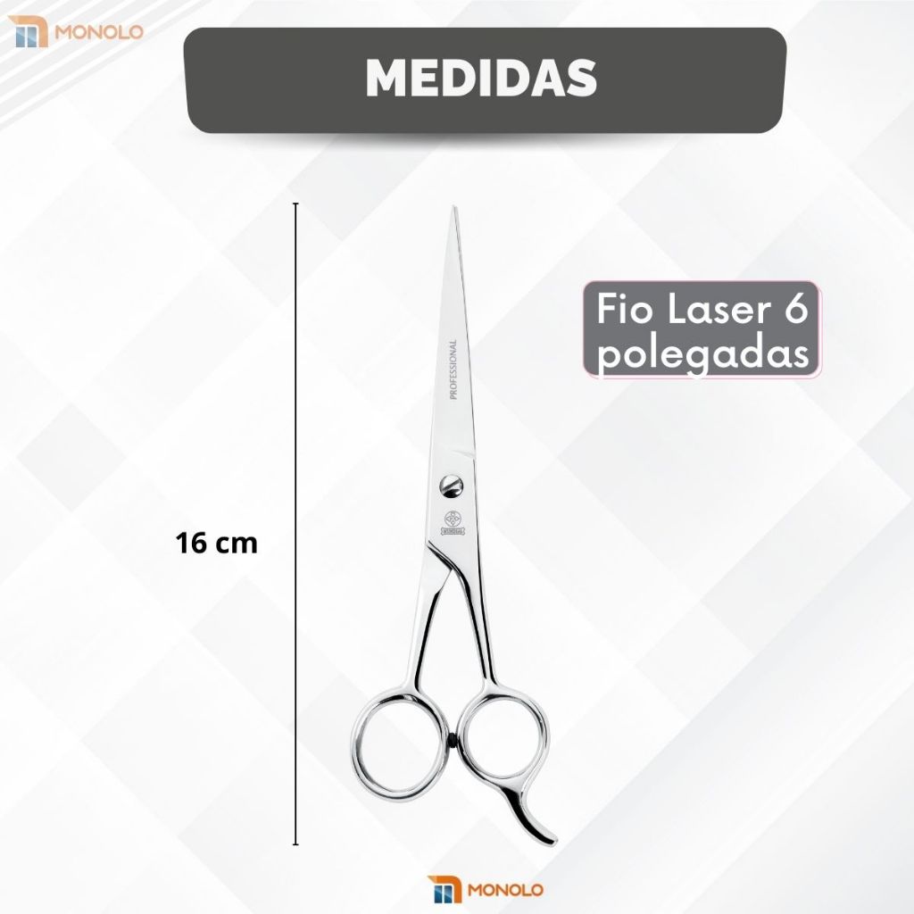 Tesoura de Cortar Cabelo Fio Laser 6 Profissional Barbeiro Cabeleireiro Mundial Aço Inox Descanso