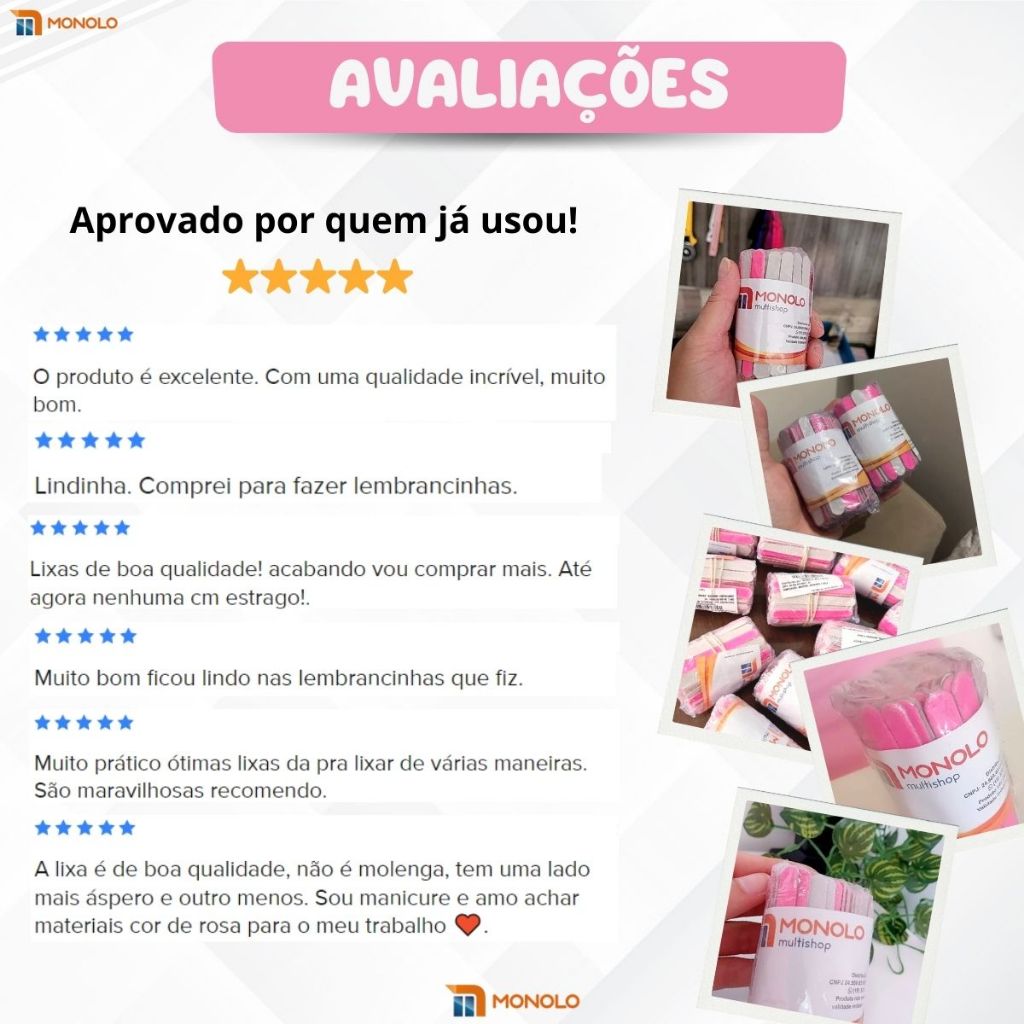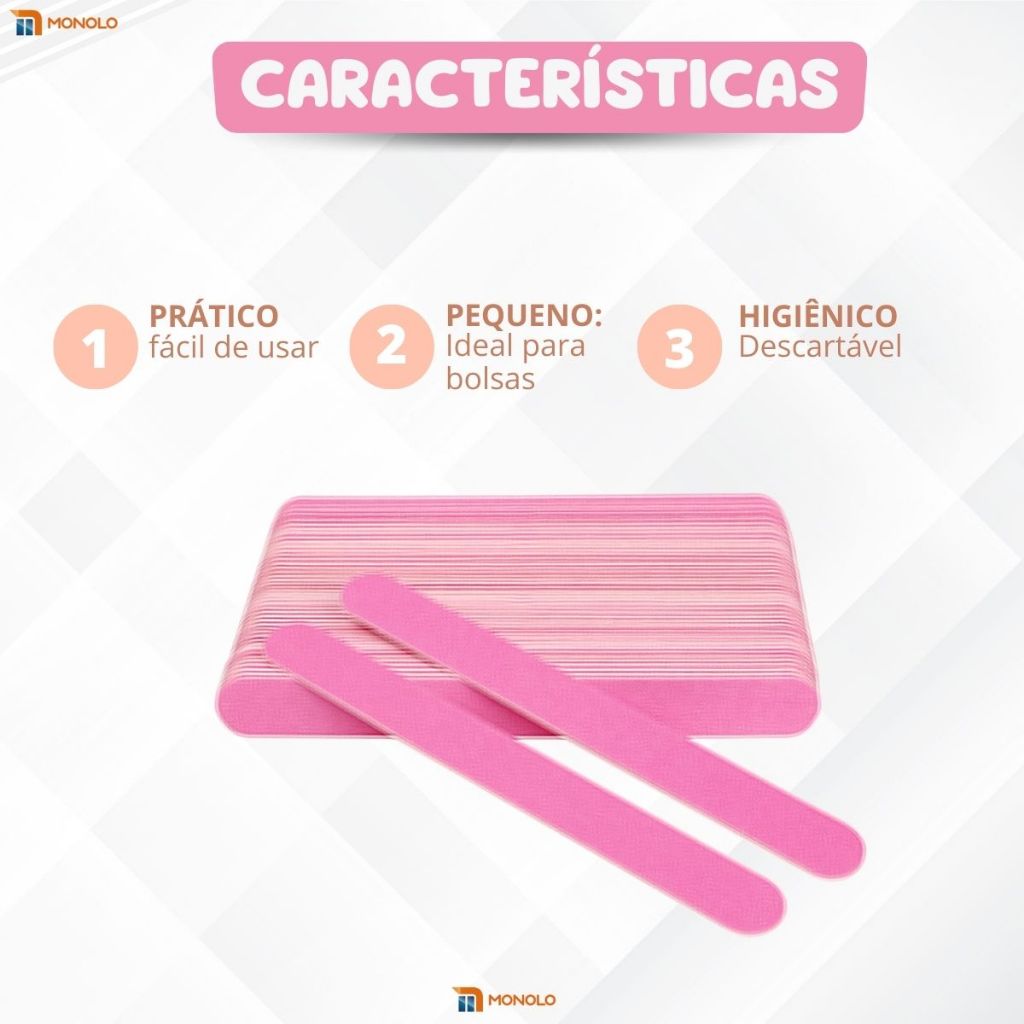 200 Lixas Rosa Unha Mini Descartáveis Manicure Pedicure Profissional Mimo Brinde Outubro Rosa Monolo