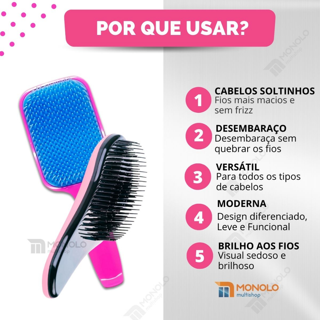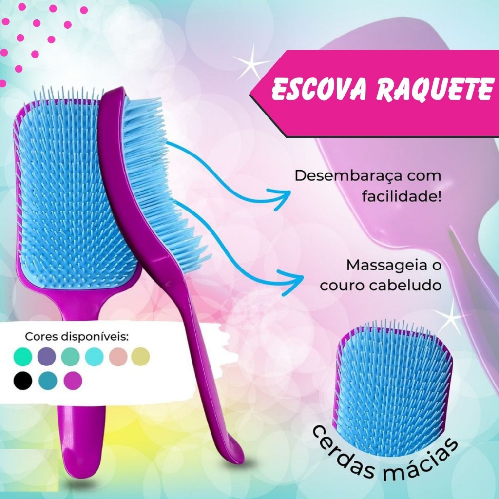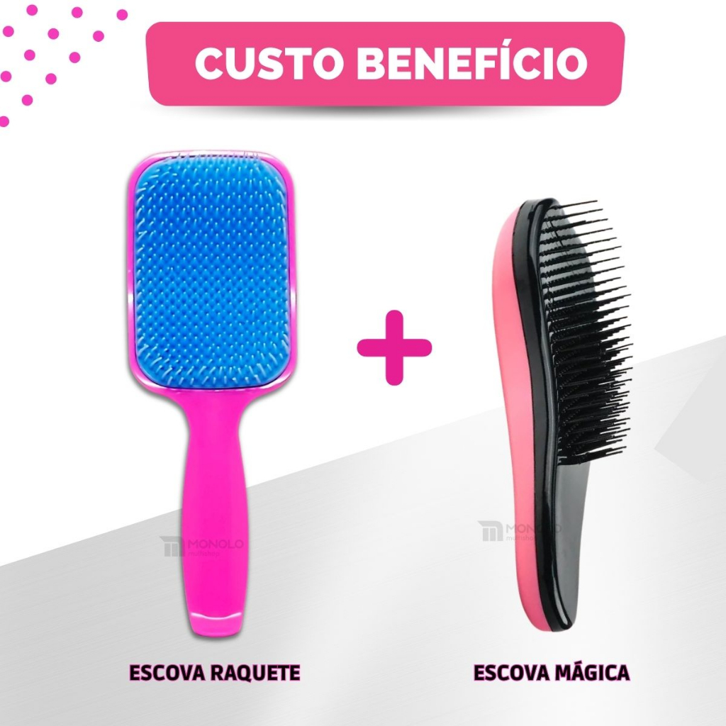 Kit Escova Cabelo Raquete + Escova Mágica Desembaraçadora Flex Salão Profissional