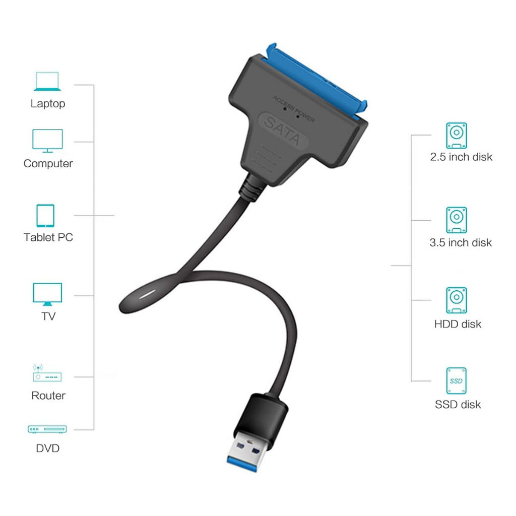 Cabo Usb 3.0 Para Sata Leitor Hd Ssd 2.5' Preto Premium