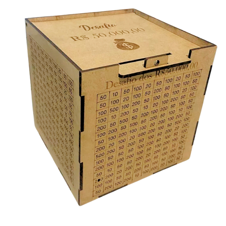 Cofre Desafio Mdf 50Mil Escolha Sua Meta Caixa De Madeira