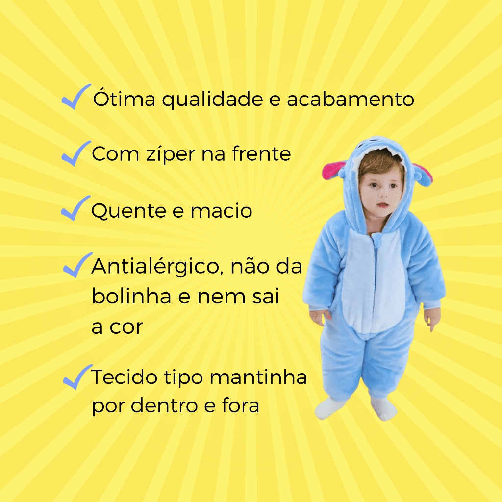 Macacão Bebê Bichinhos Inverno Lilo Stitch Peluciado - Envio Imediato