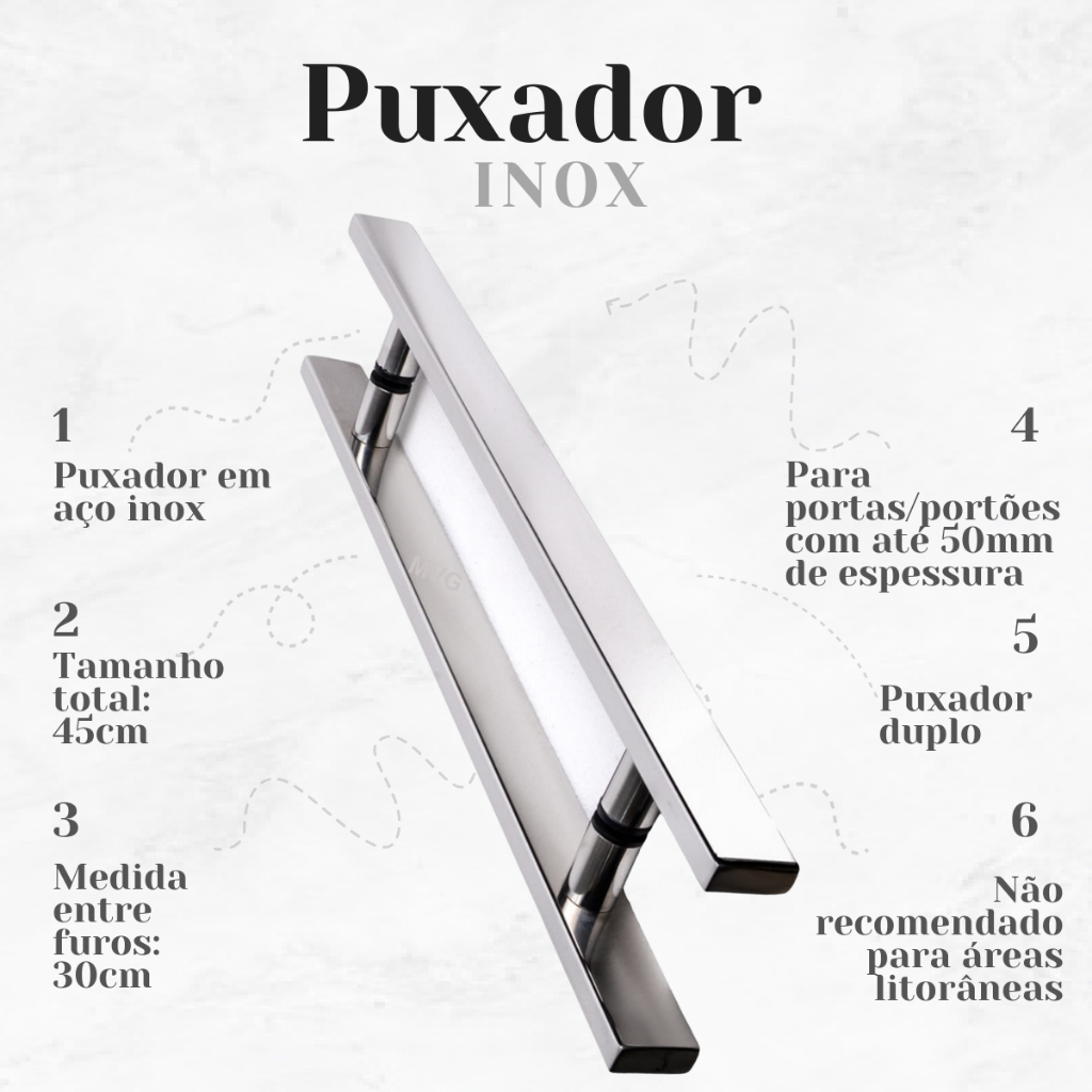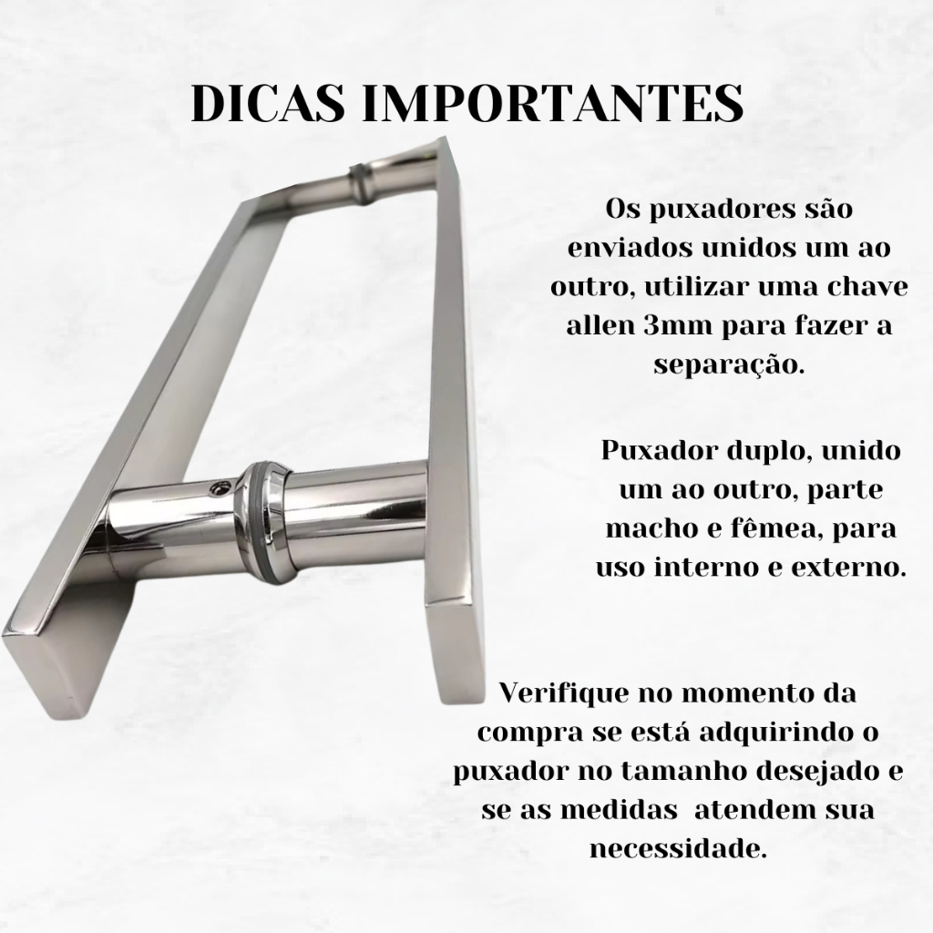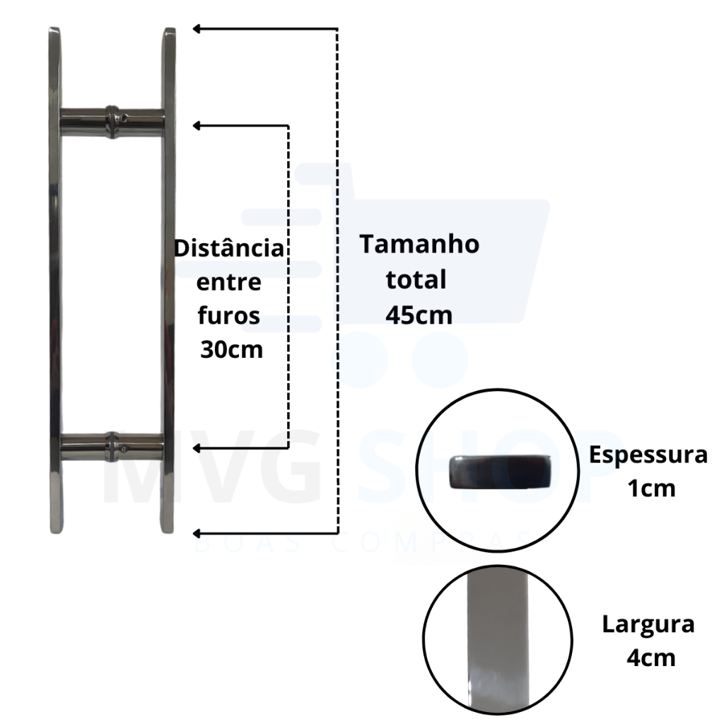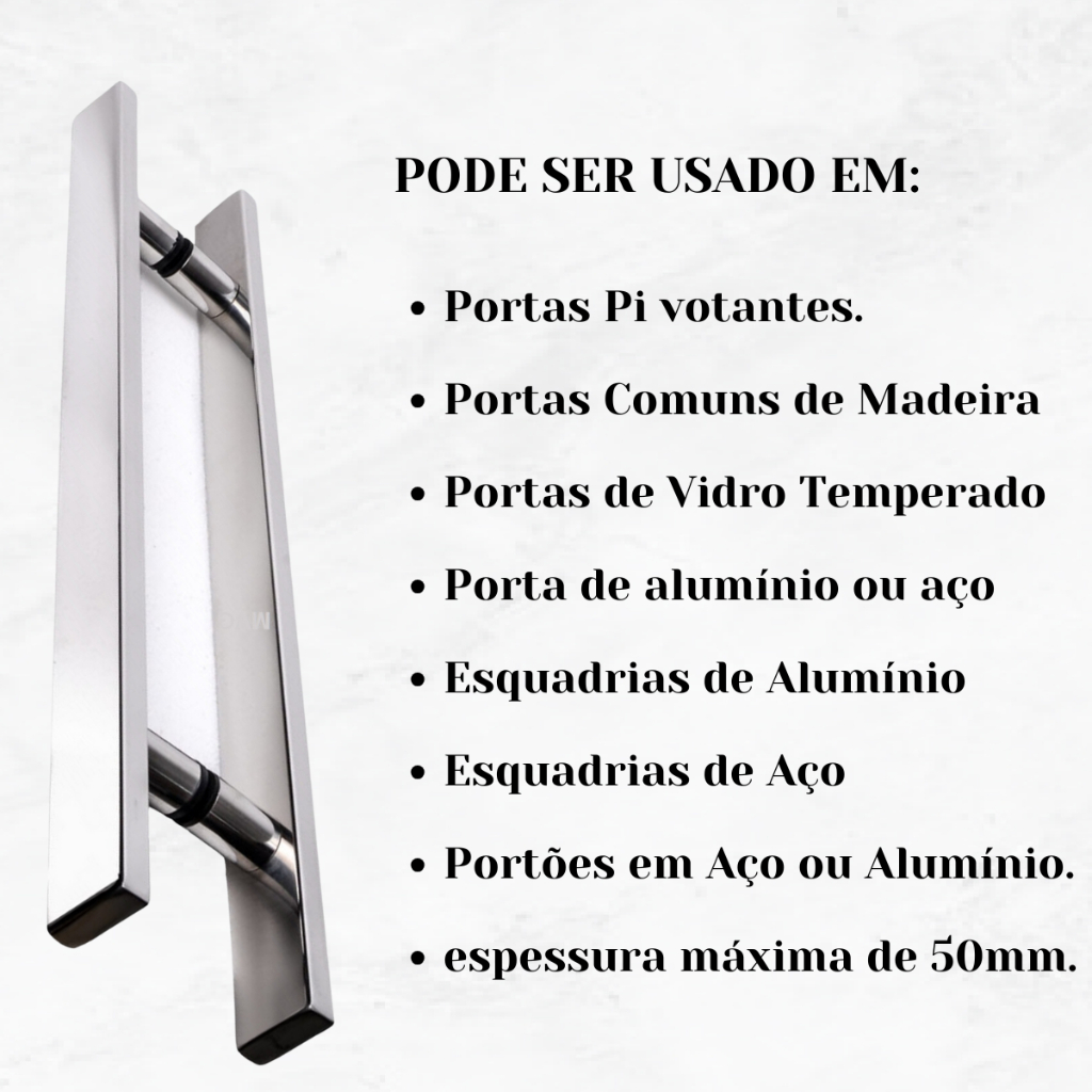 Puxador Chato em Aço Inox Polido 45cmx30cm porta Madeira/Vidro/Alumínio
