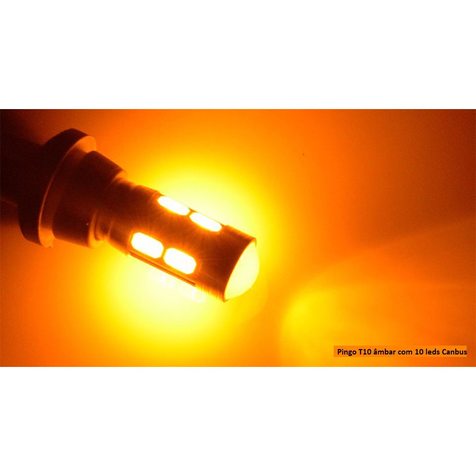 2x Lâmpada Pingo Led T10 W5w Âmbar Laranja Canbus Canceller Alumínio Farolete