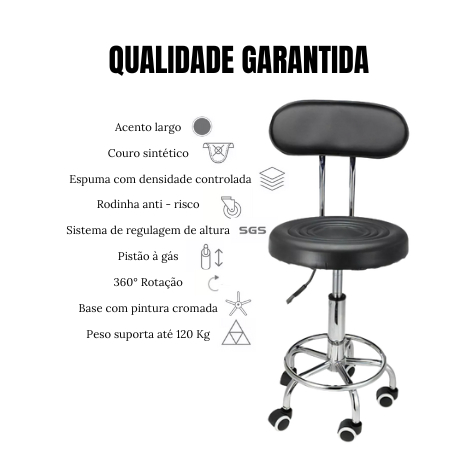 Cadeira Mocho Cromada Banqueta Encosto Tattoo Clinica Estetica Odontológico Maca Escritório Salão