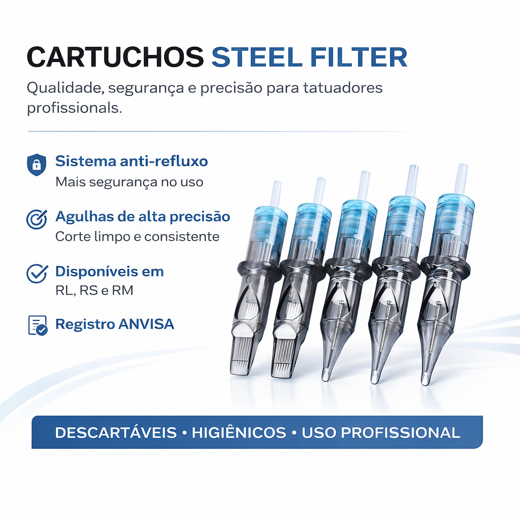 Cartucho com agulha MÁQUINA PEN UNIVERSAL Tatuagem Traço pintura steel filter 5un