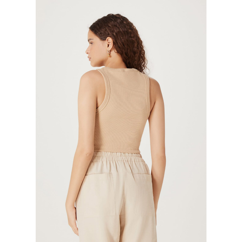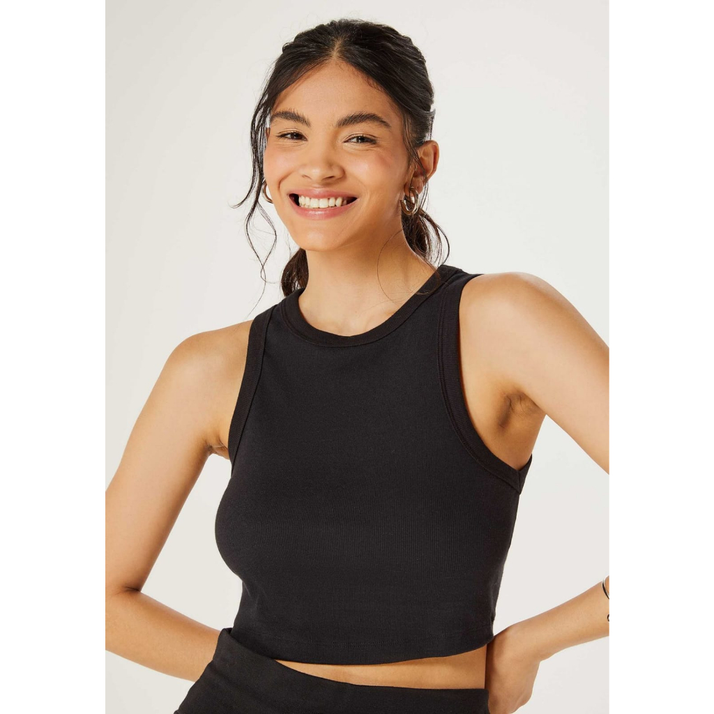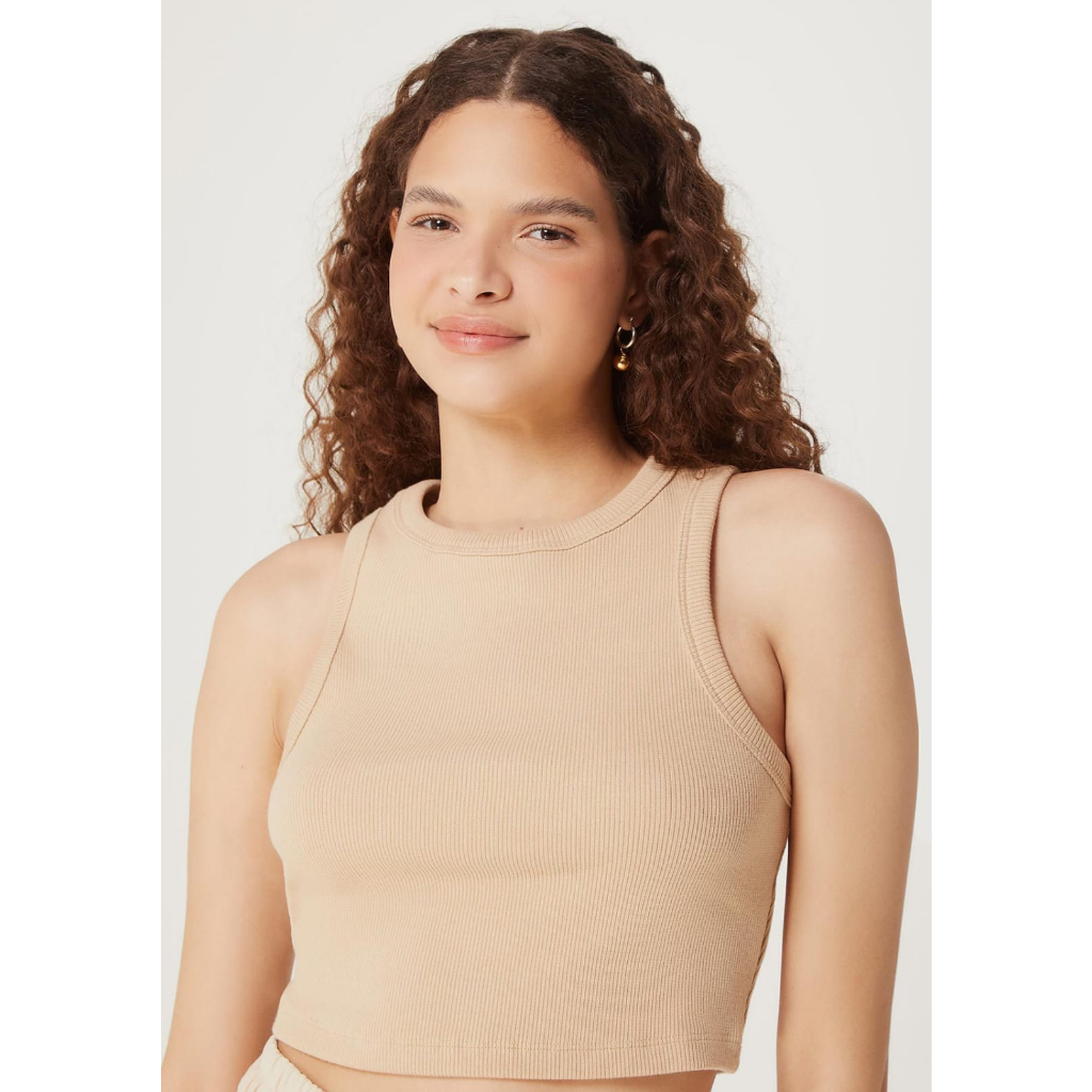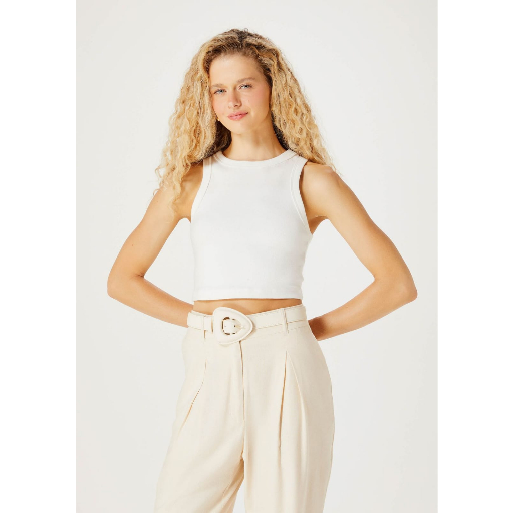 Camiseta Cropped Regata Curto de malha Algodão canelada lisa Lançamento Opções de Cores