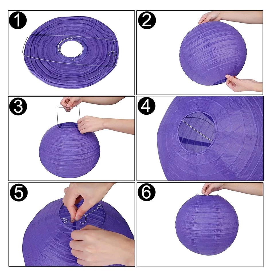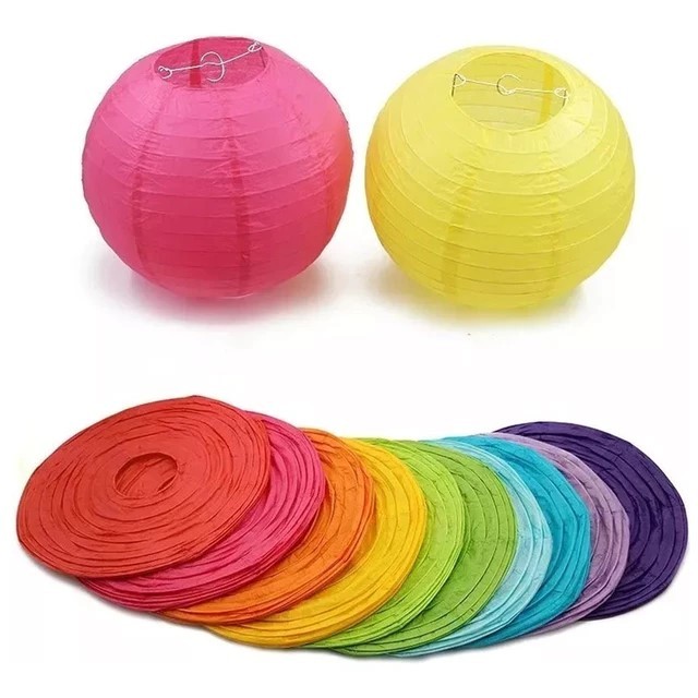 Kit 10 Luminária Balão Oriental Coloridas Lanterna Redonda 15cm/20cm/25cm/30cm/35cm/40cm Em Papel