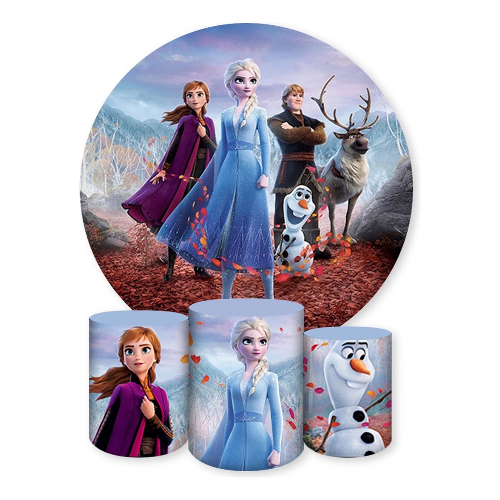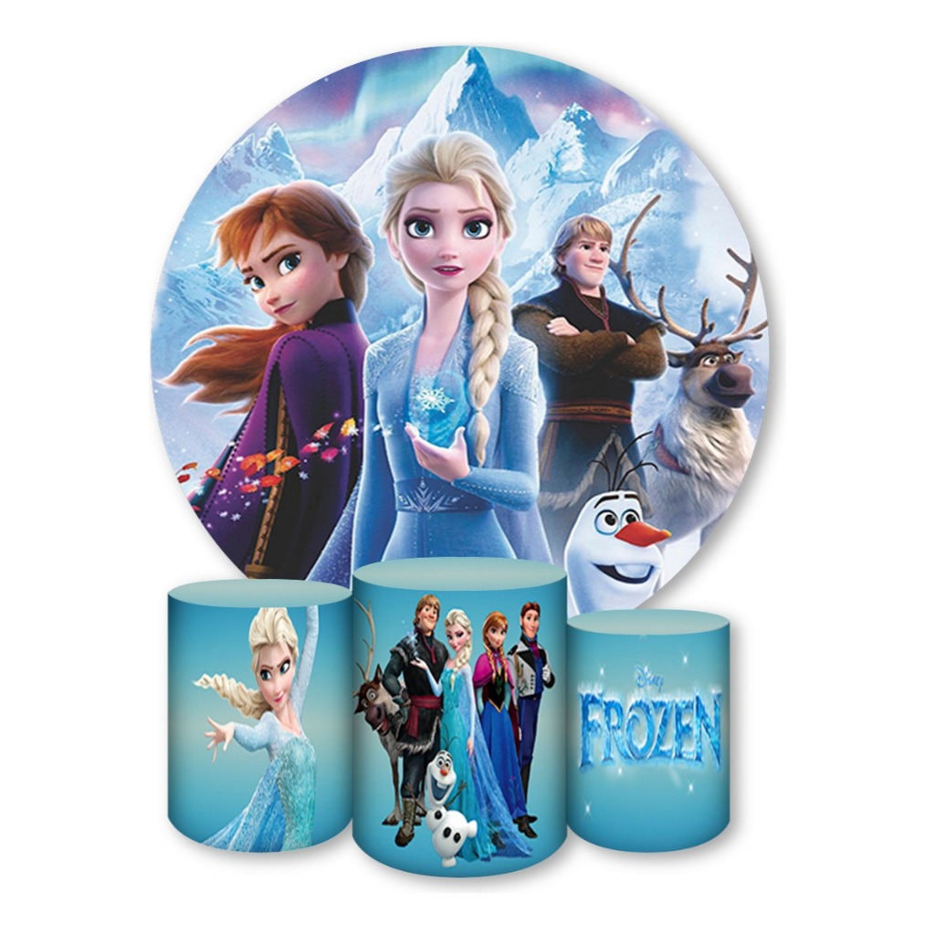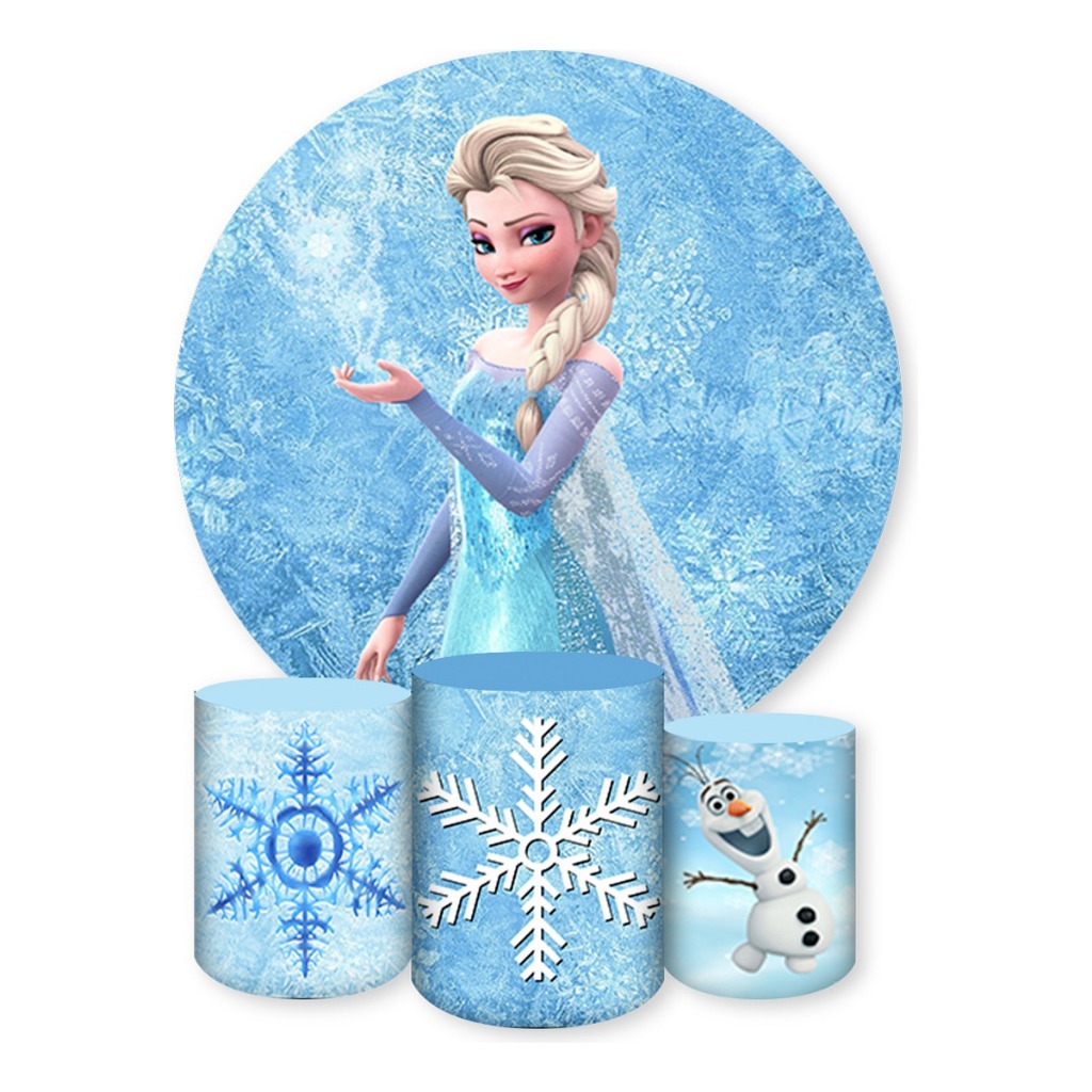 Painel Redondo E Capas De Cilindro Sublimados Frozen