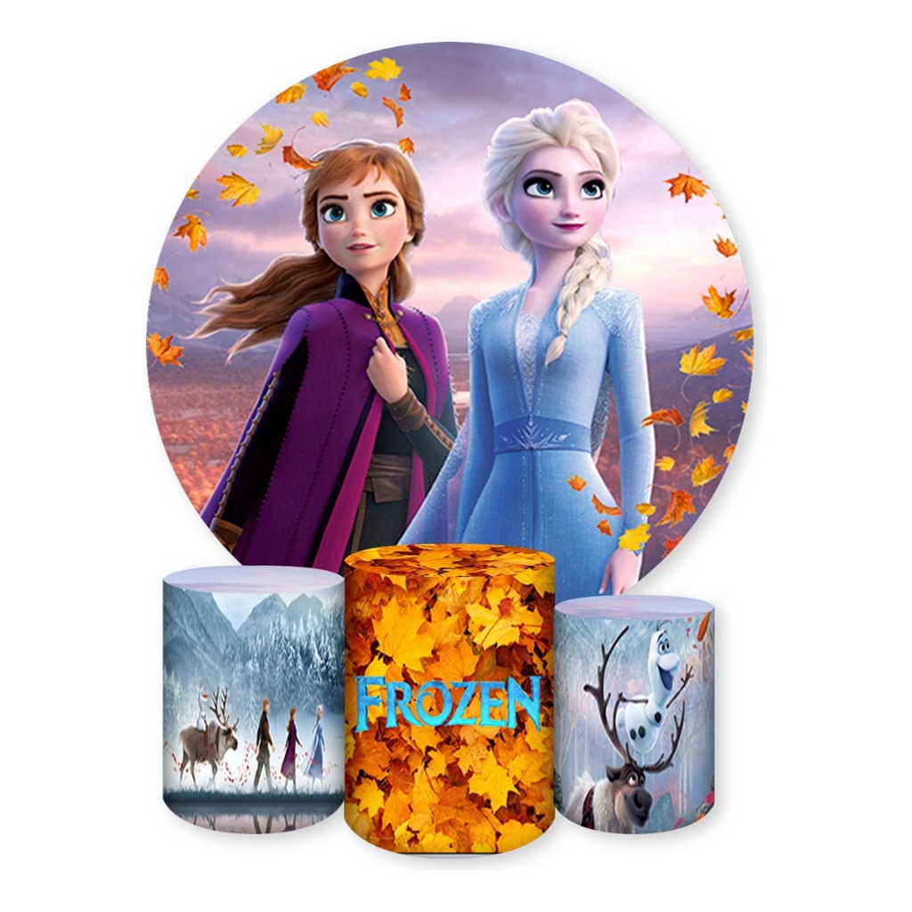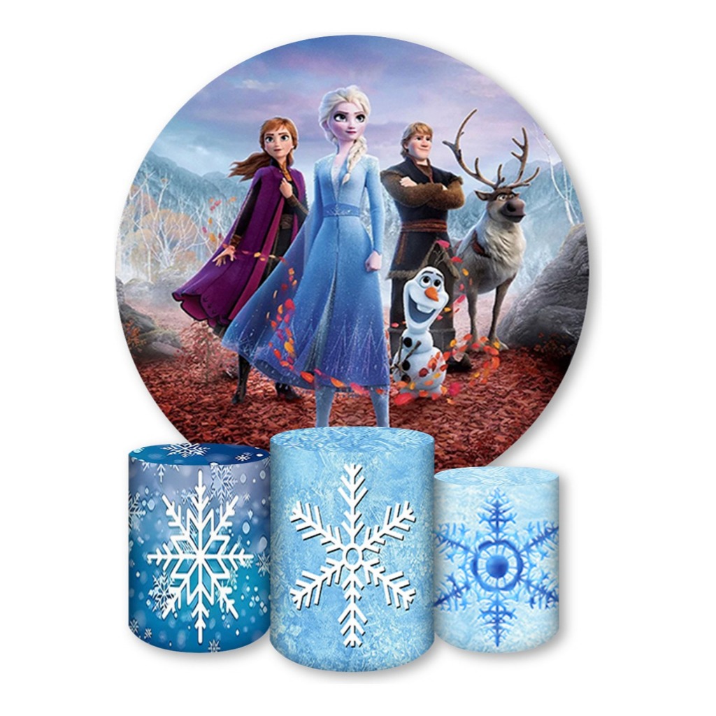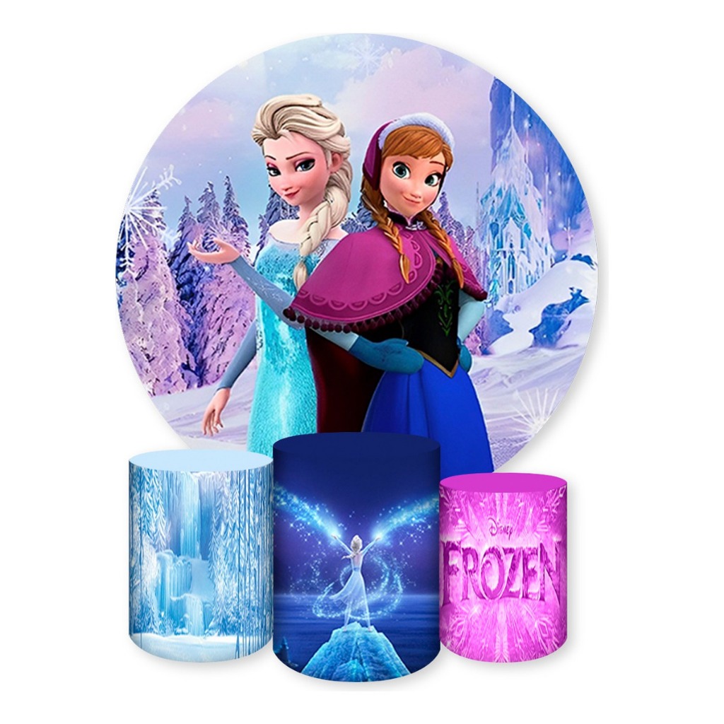 Painel Redondo E Capas De Cilindro Sublimados Frozen