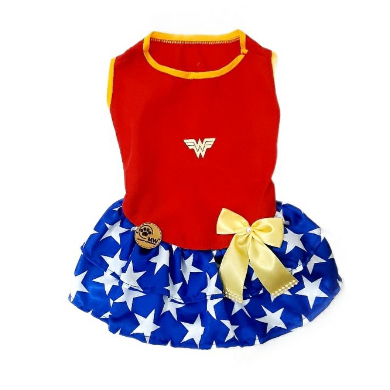 Vestido Pet Mulher Maravilha Roupinha de Cachorro Mulher Maravilha