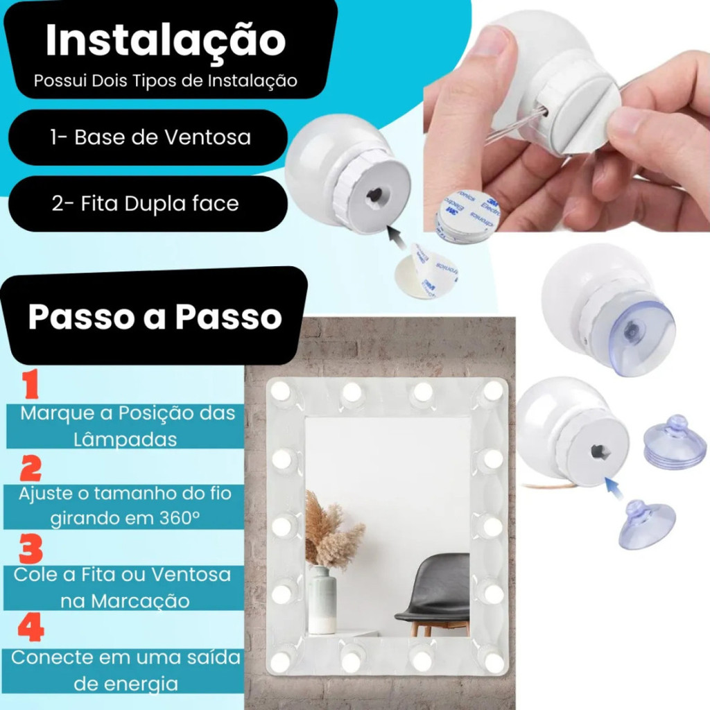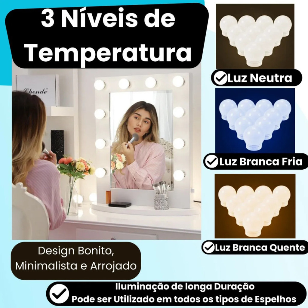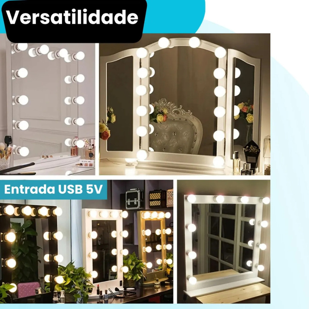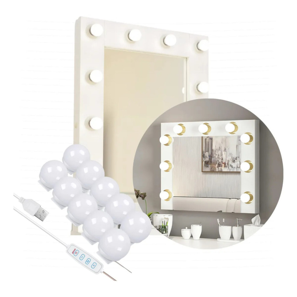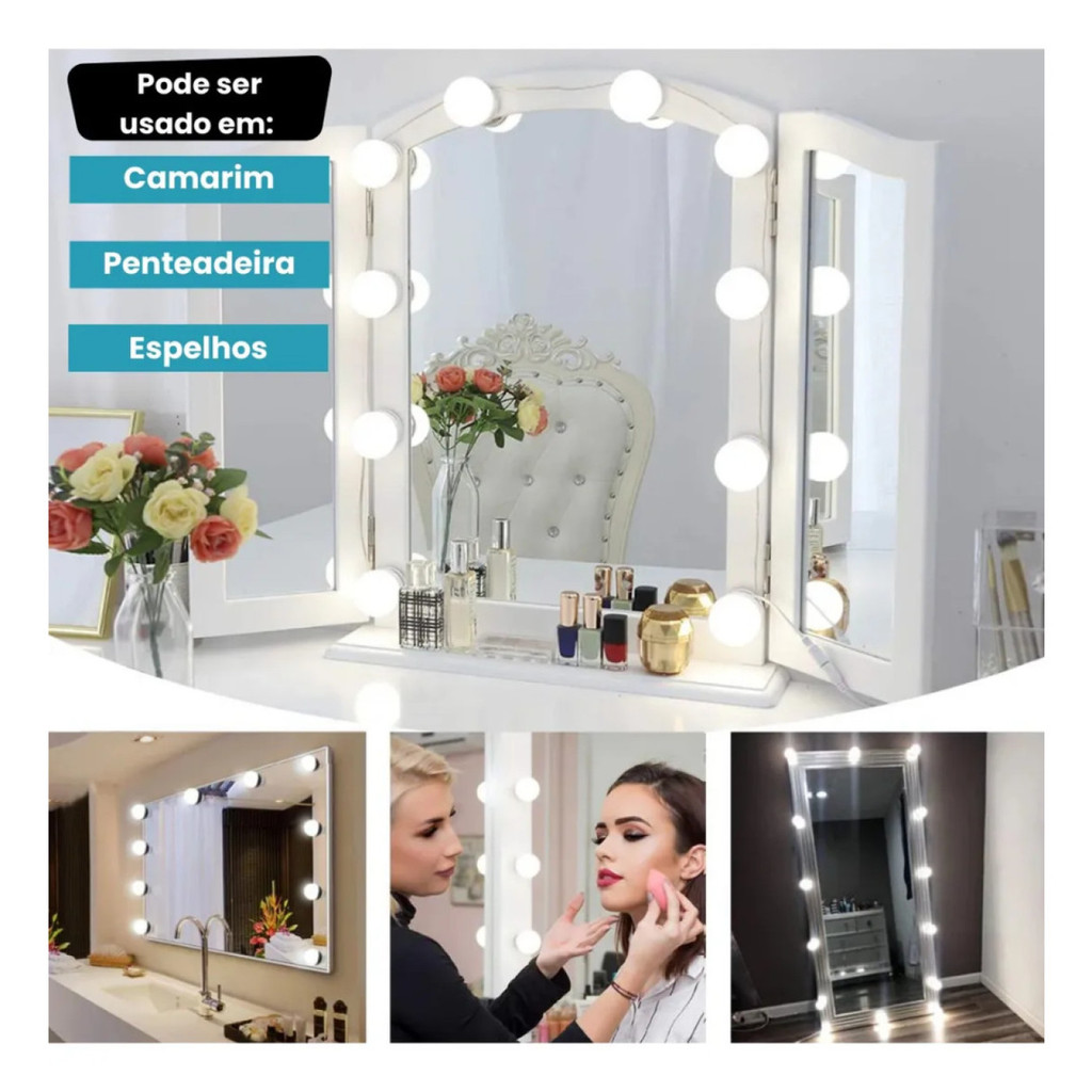Kit Luz De Espelho Maquiagem Camarim 10 Lâmpadas Penteadeir