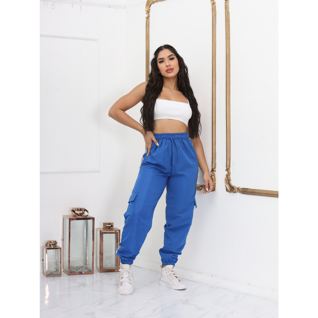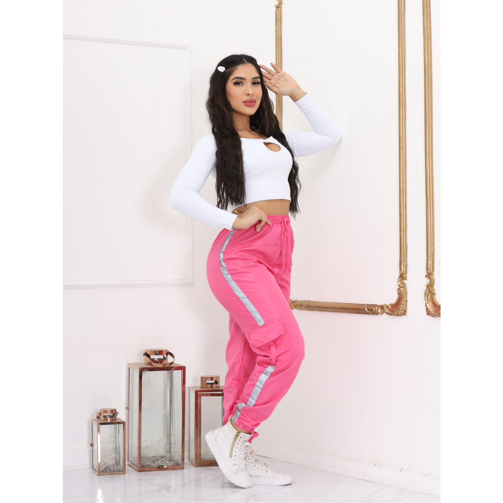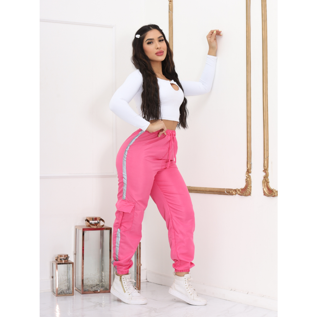 Calça Jogger Cargo Feminina TACTEL Com Faixas Refletivas e bolsos laterais