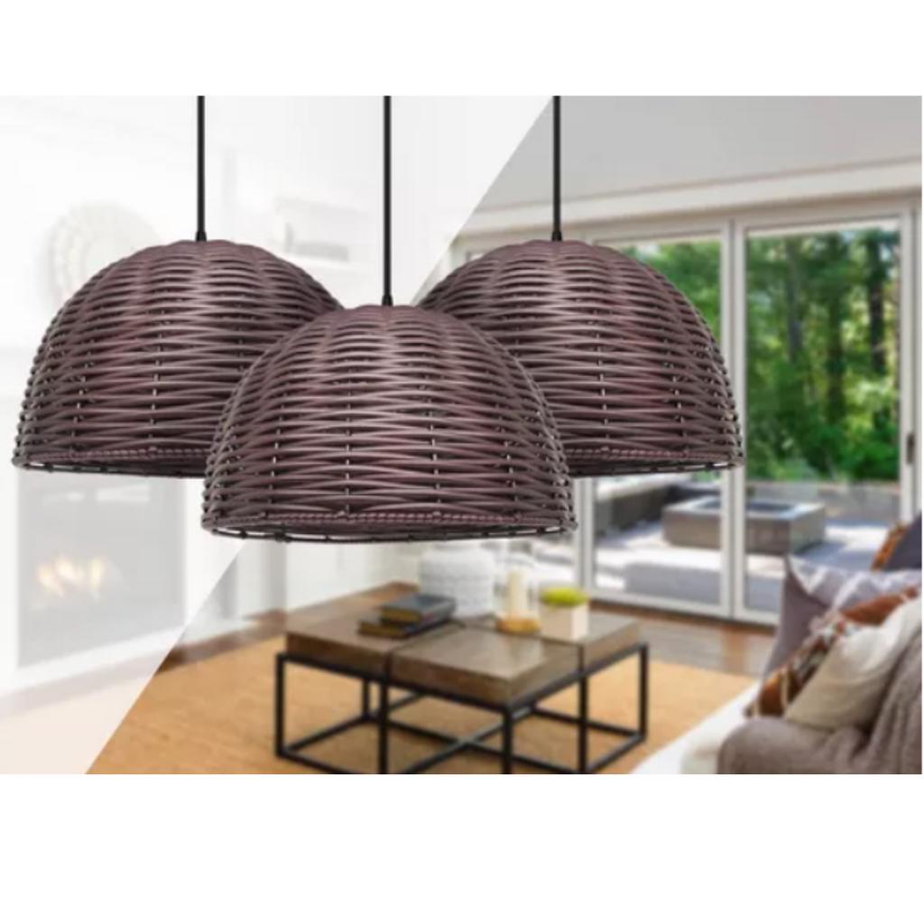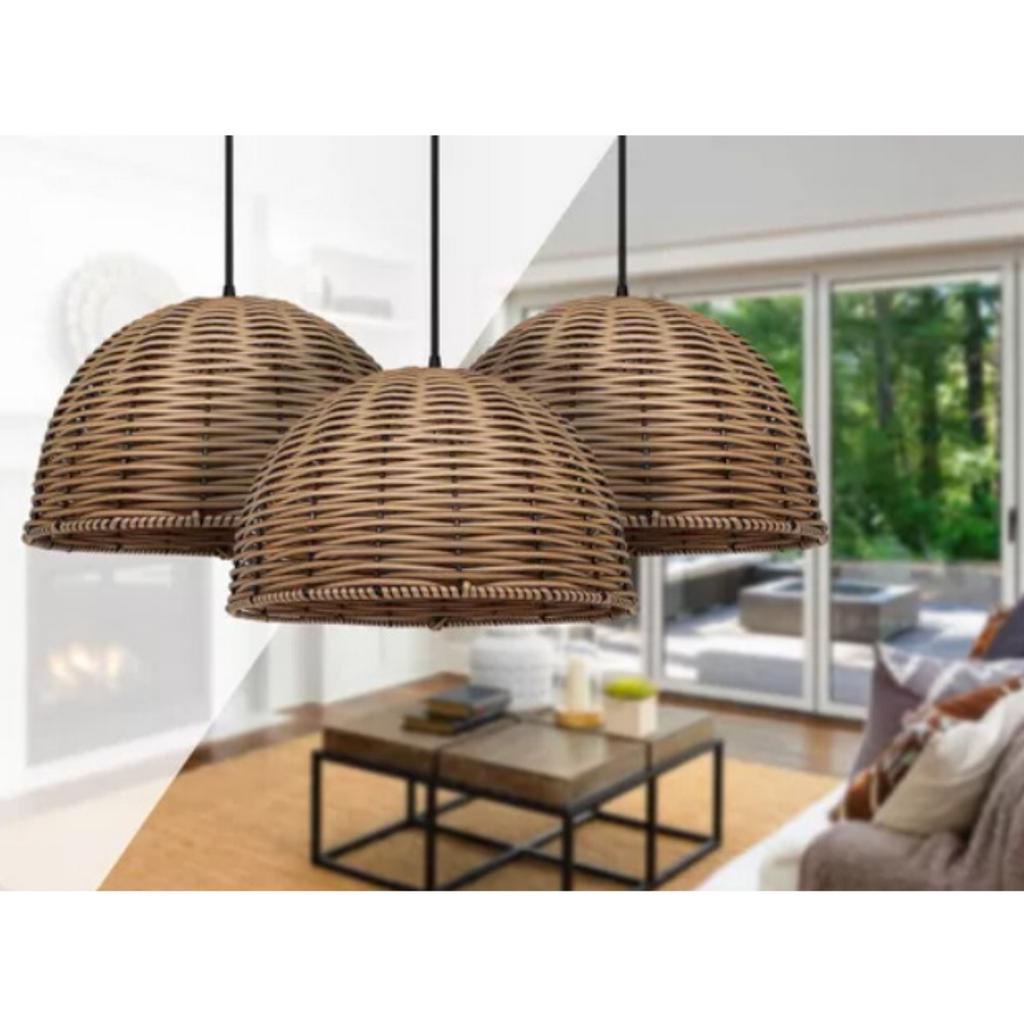 Pendente Aramado Luminária Lustre Meia Esfera Junco Fibra Sintética Moderno