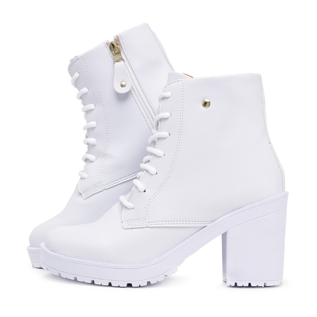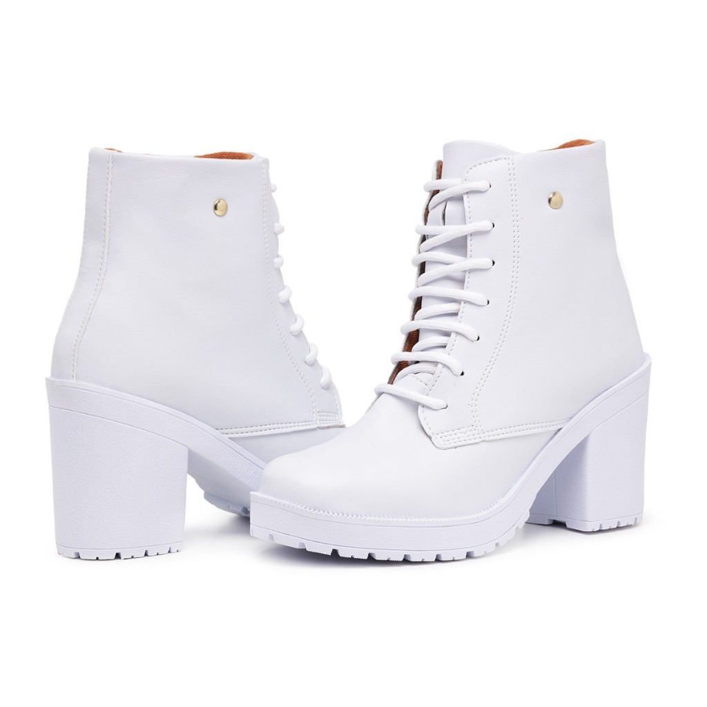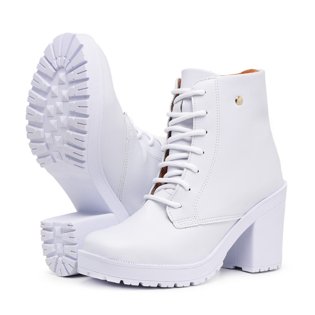 Kit Bota Coturno Feminino Branco Solado Tratorado e Bolsa Quadrada Baladinha Bordada