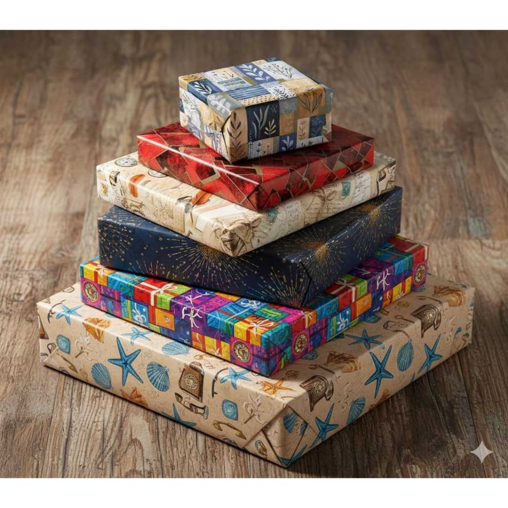 Papel de Presente Masculino Feminino Neutro Estampas Casual 50cm x 60cm Pacote Com 40 Folhas PROMOÇÃO!!!