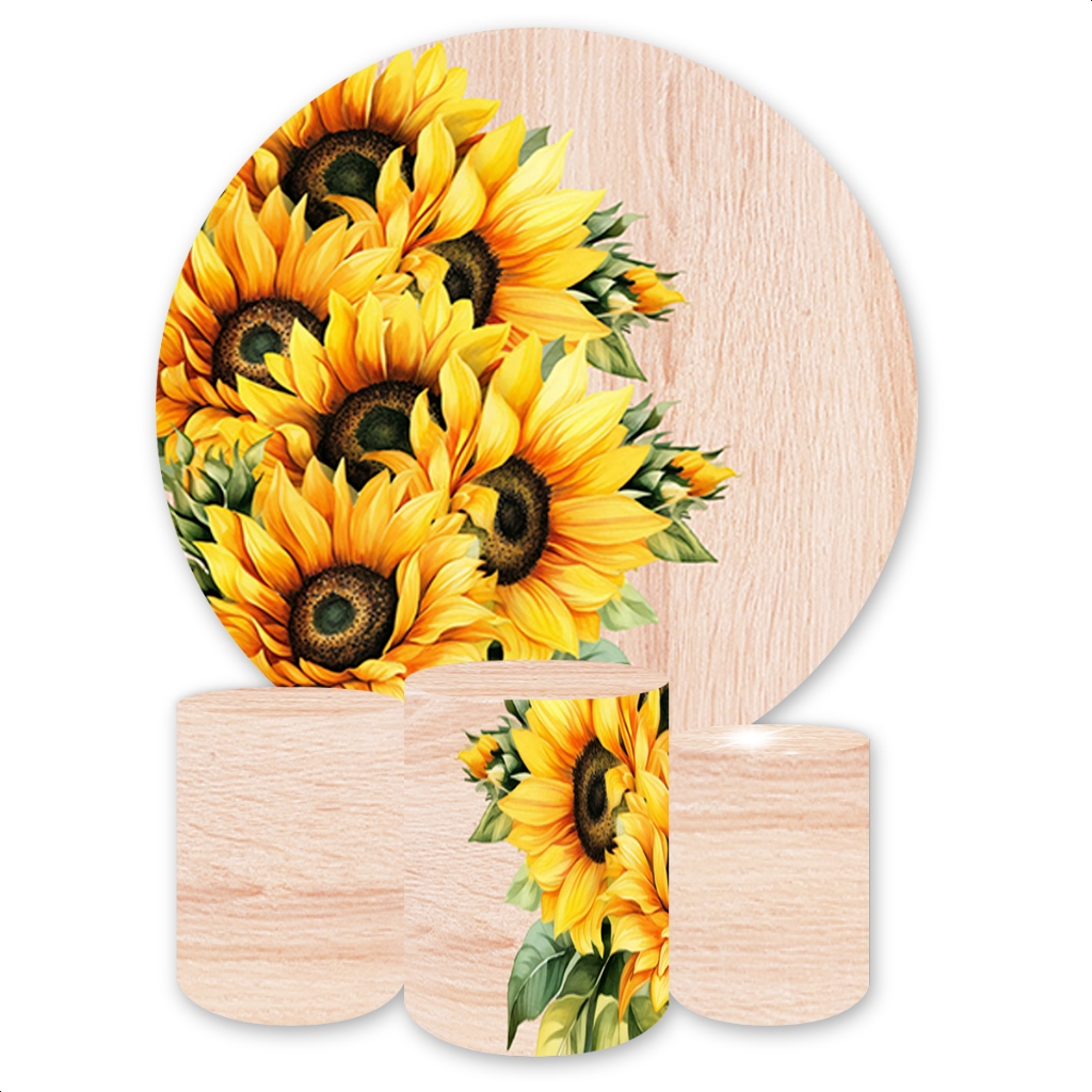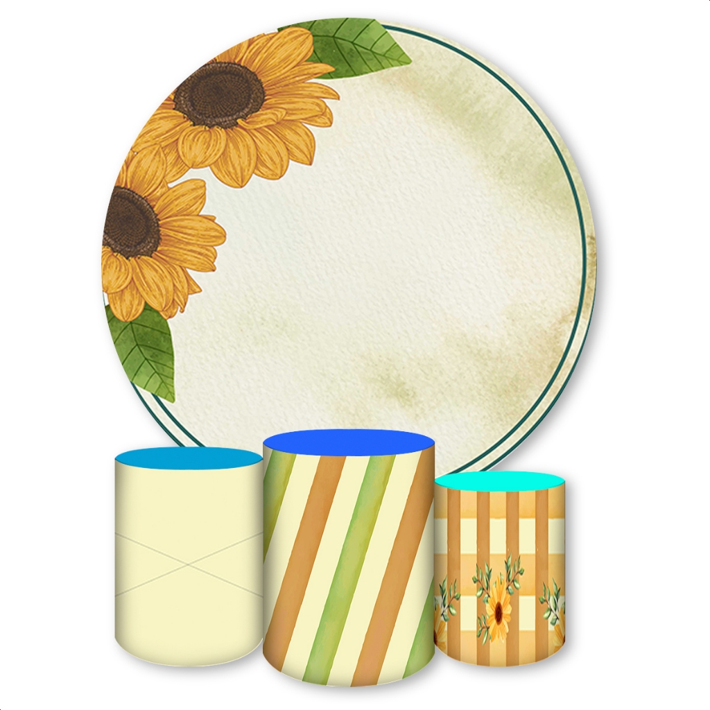 Kit Capa de Painel Redondo + Trio Capas de Cilindro Sublimados Tema Girassol