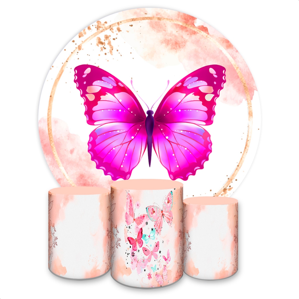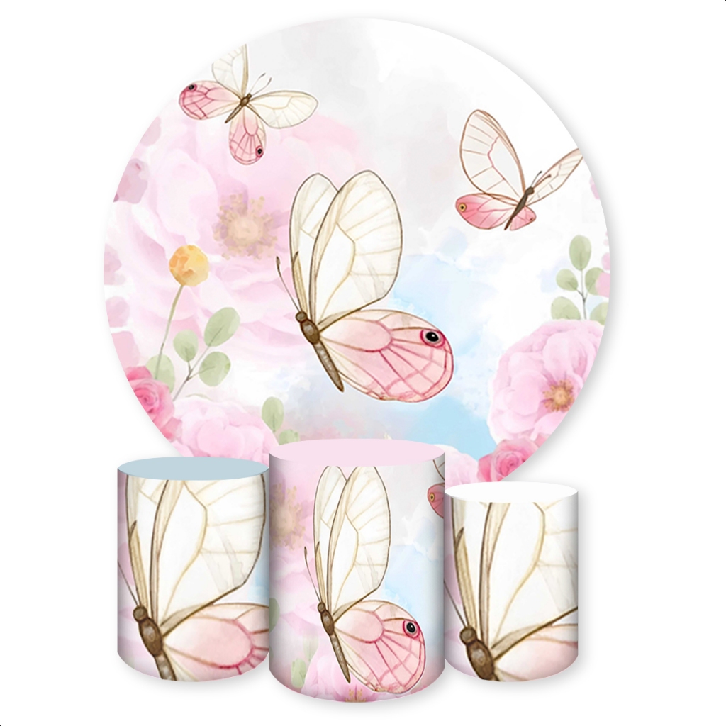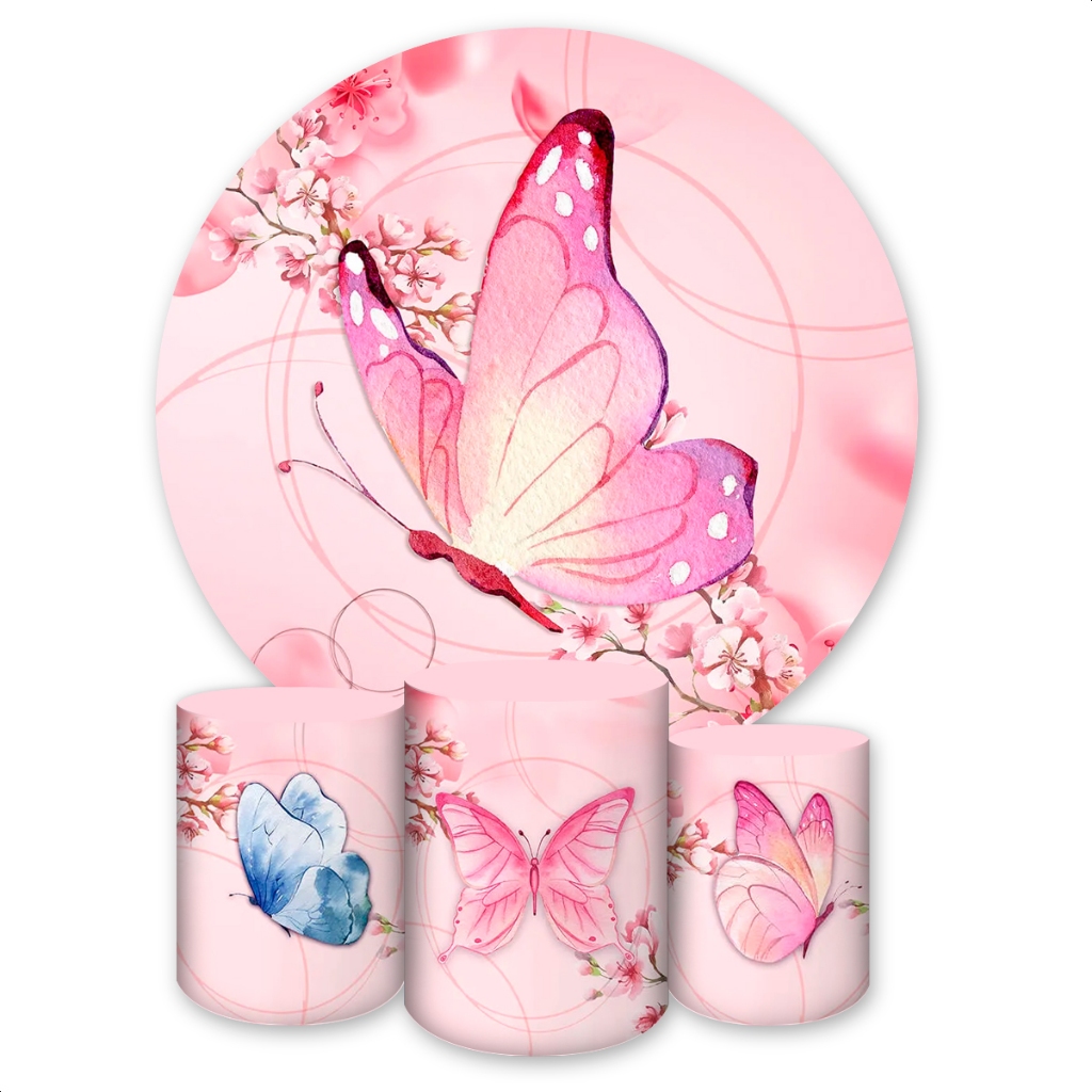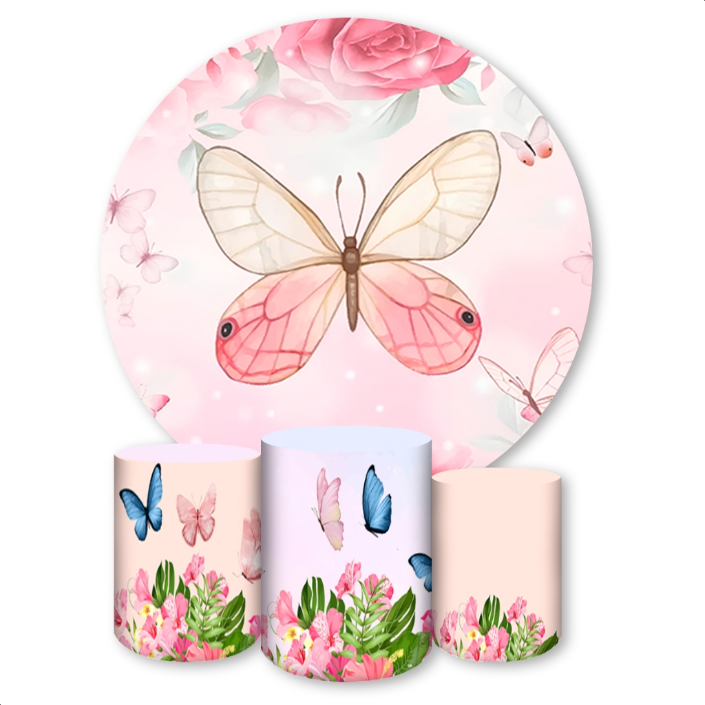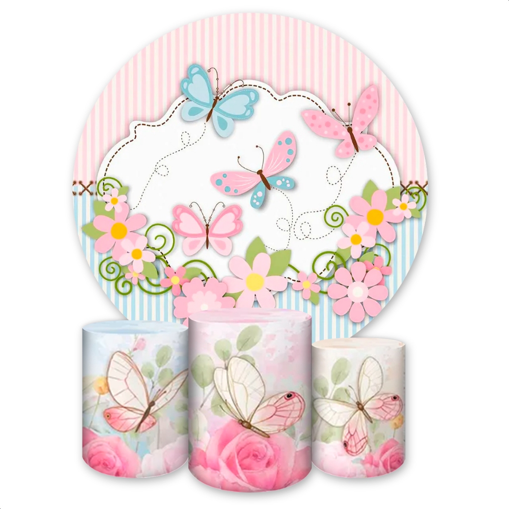 Kit Capa Painel Redondo + Trio Capas de Cilindros Sublimado Tema Borboletas